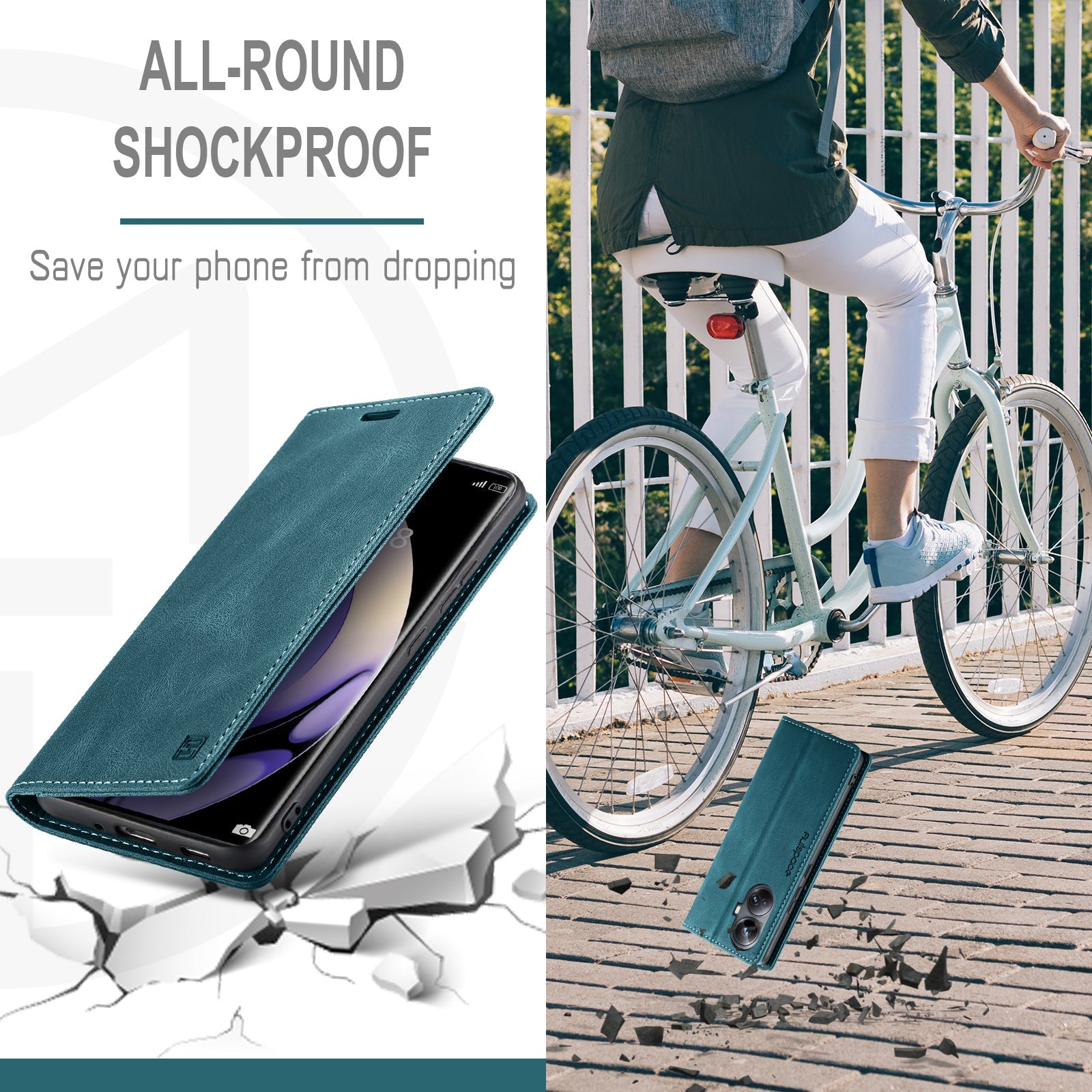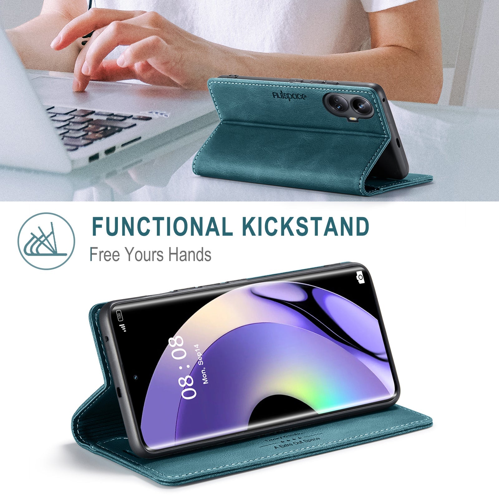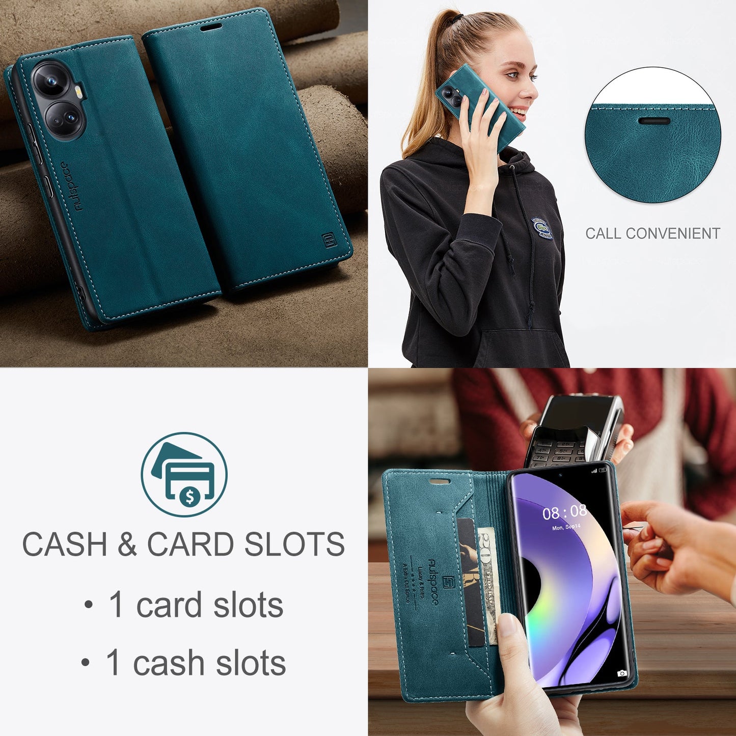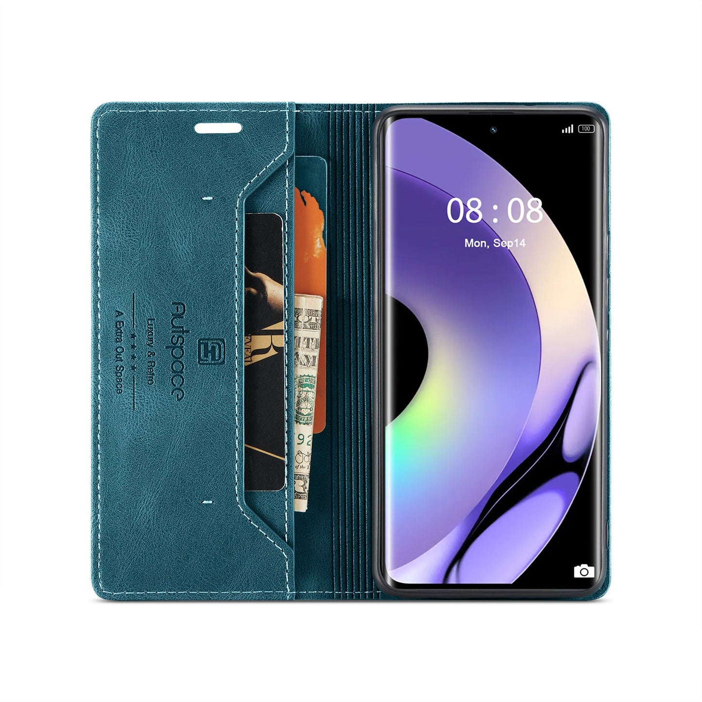 For Realme 10 Pro+ 5G Wallet Case AUTSPACE A01 Leather Stand Cover with RFID Blocking Card Holder - Blue