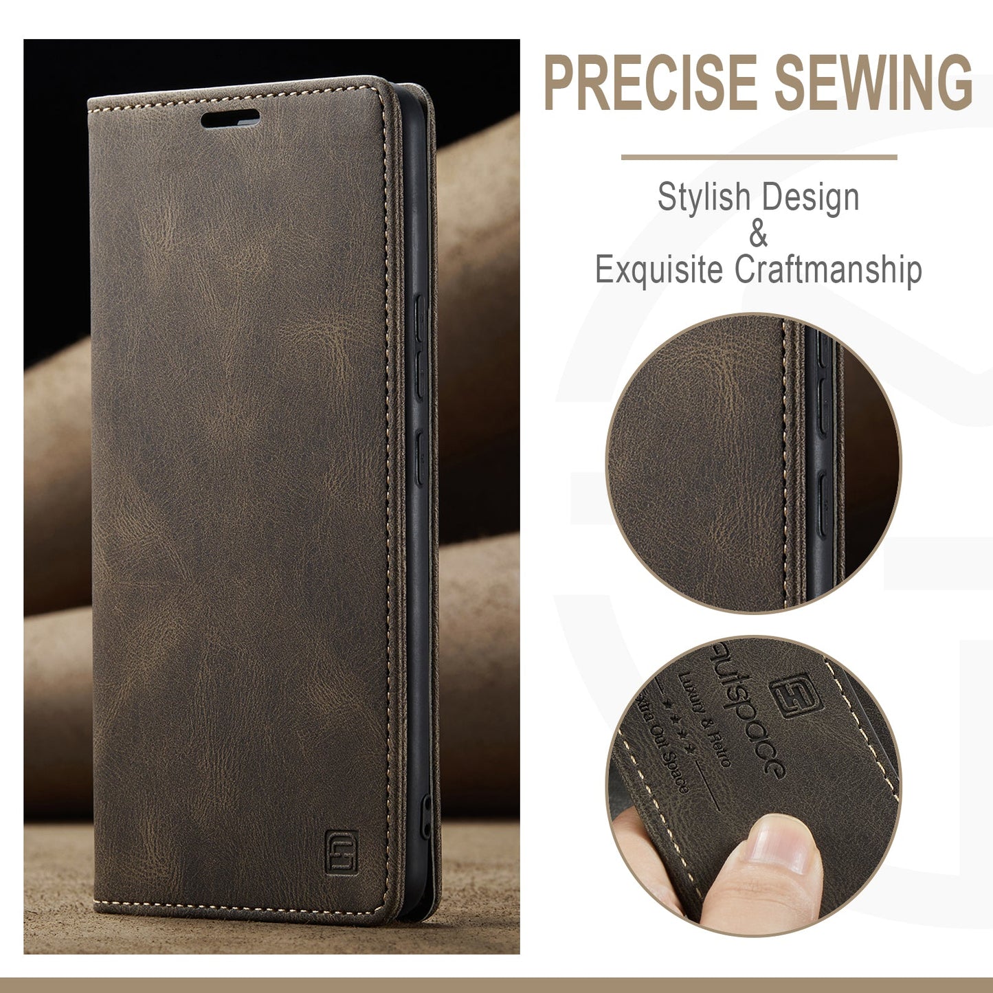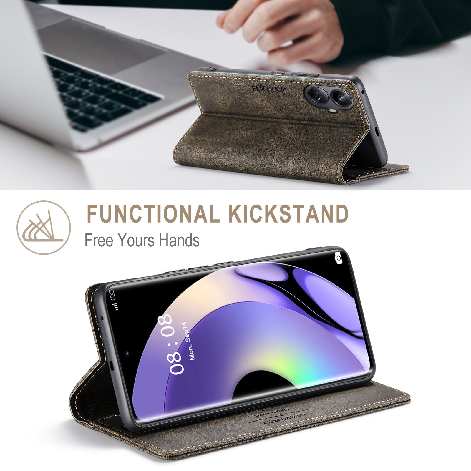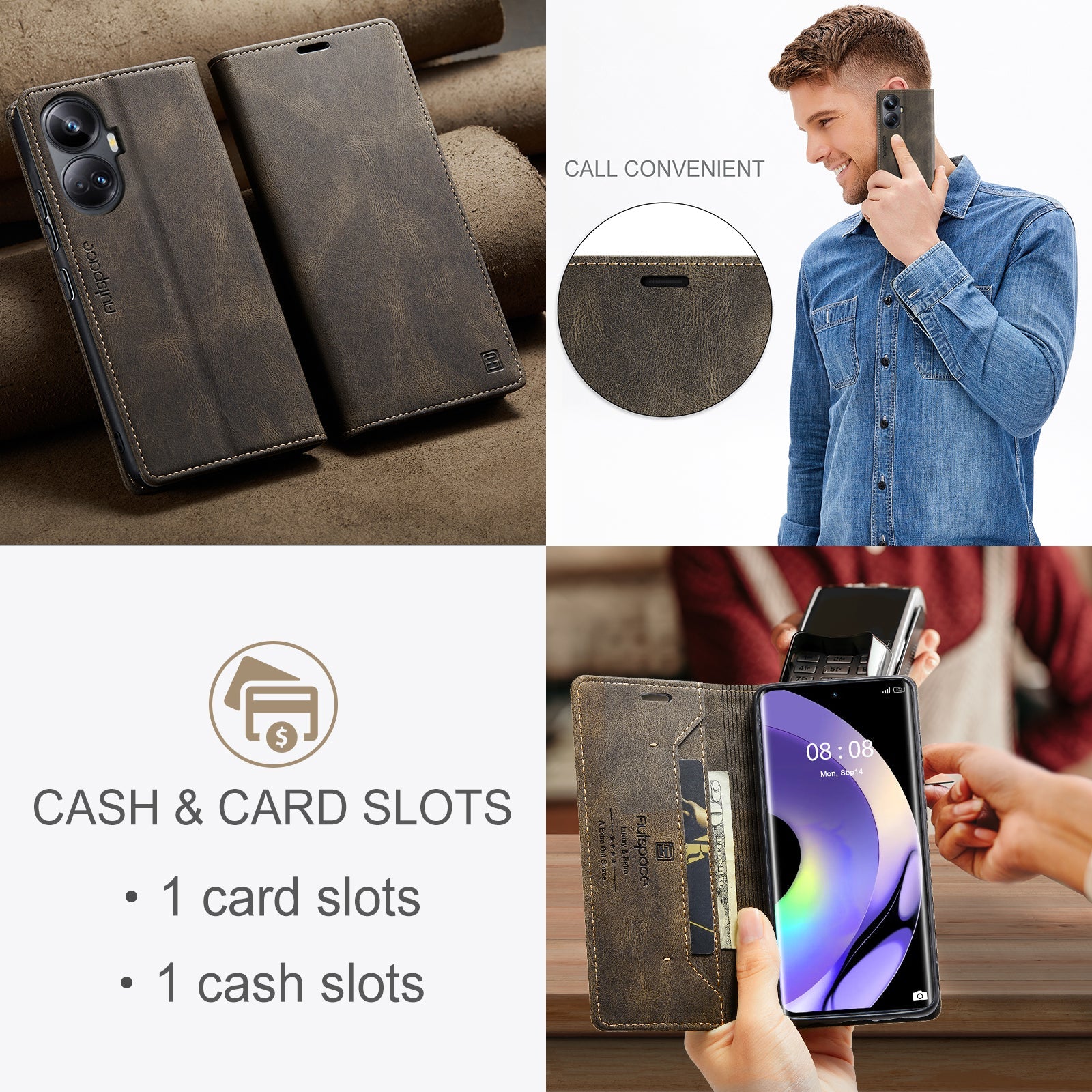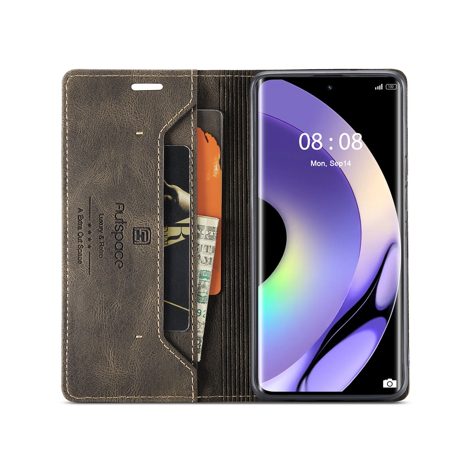 For Realme 10 Pro+ 5G Wallet Case AUTSPACE A01 Leather Stand Cover with RFID Blocking Card Holder - Coffee