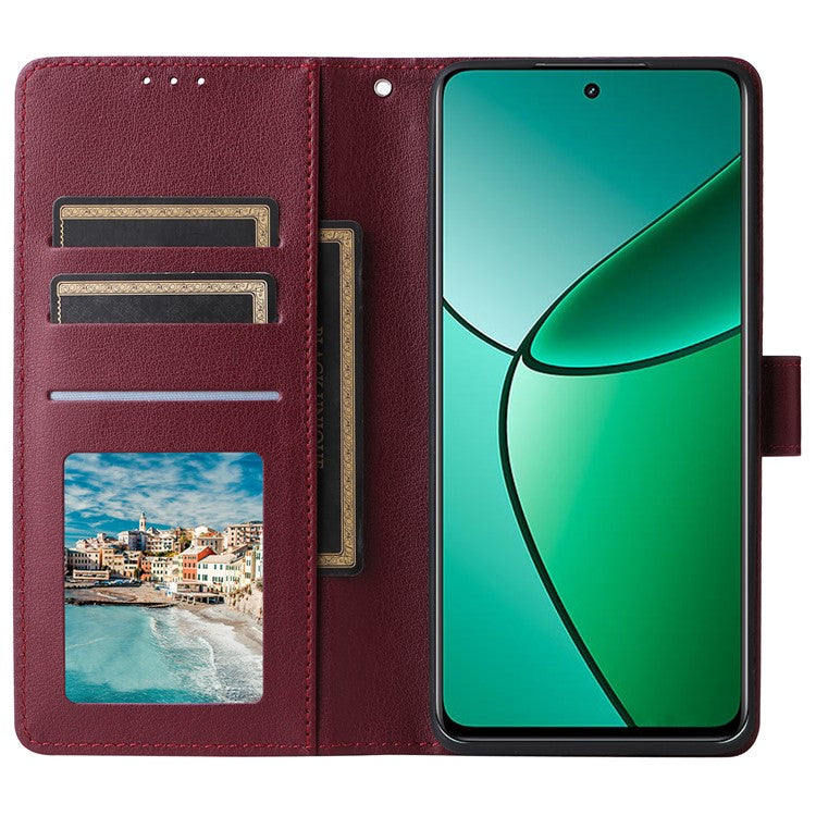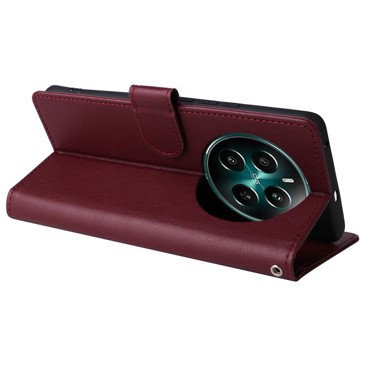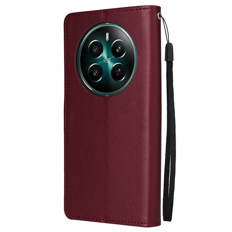 For Realme 12 4G / 12+ 5G Case 3 Card Slots Slim-Fit PU Leather Wallet Stand Phone Cover - Wine Red
