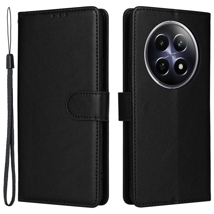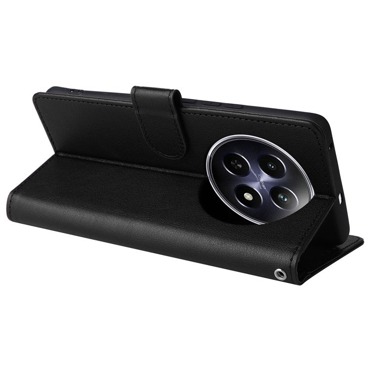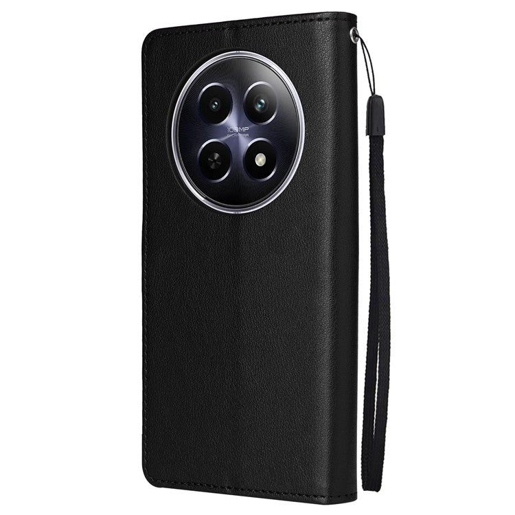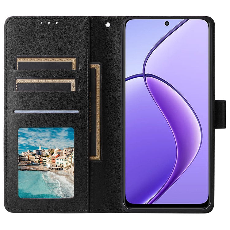 For Realme 12 5G Case 3 Card Slots PU Leather Wallet Stand Phone Cover - Black