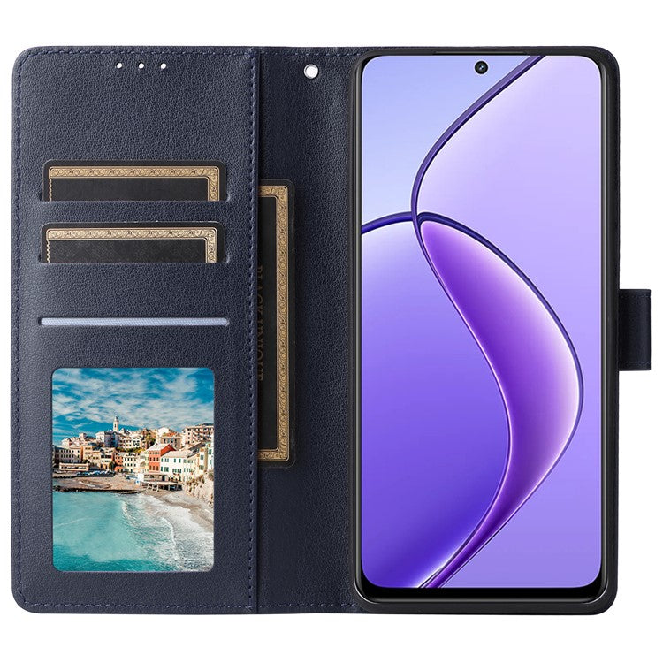 For Realme 12 5G Case 3 Card Slots PU Leather Wallet Stand Phone Cover - Blue