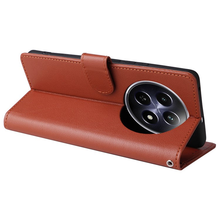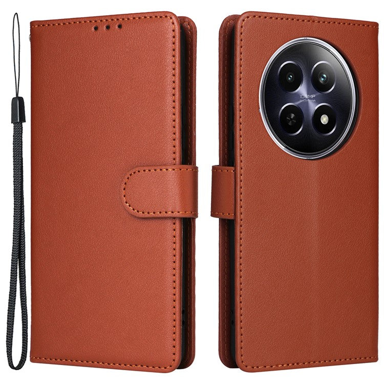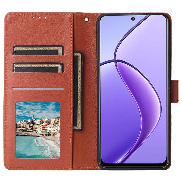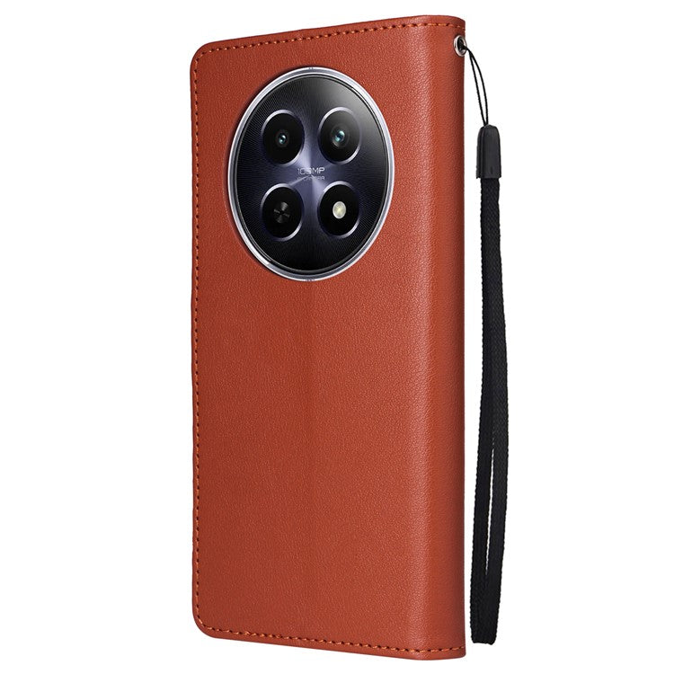 For Realme 12 5G Case 3 Card Slots PU Leather Wallet Stand Phone Cover - Brown