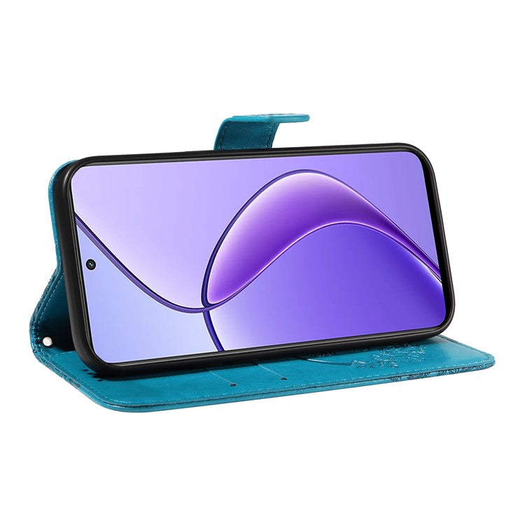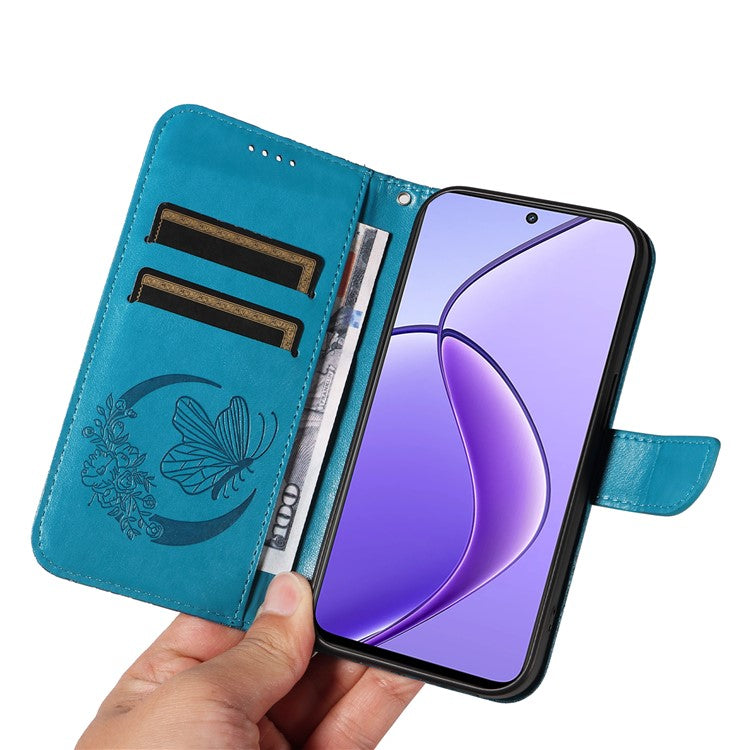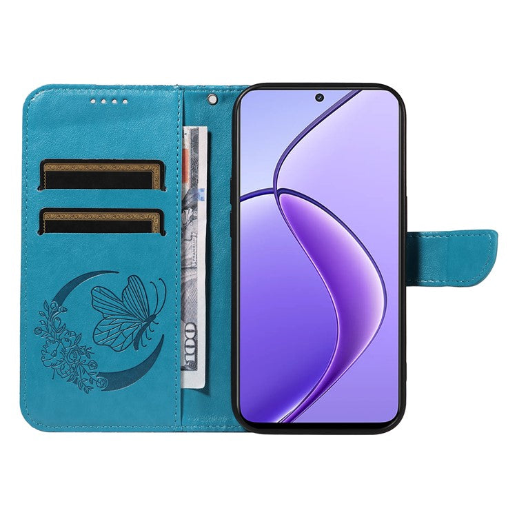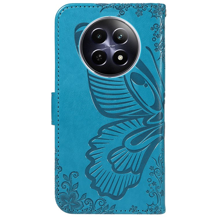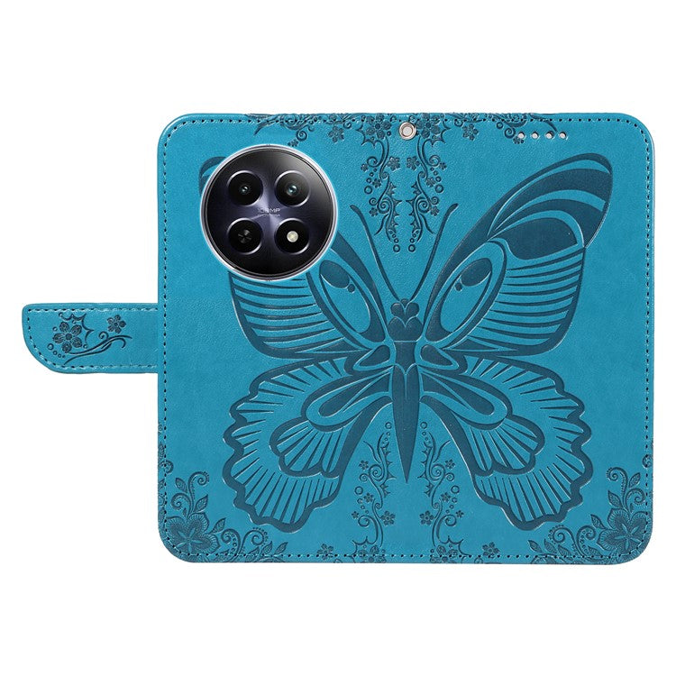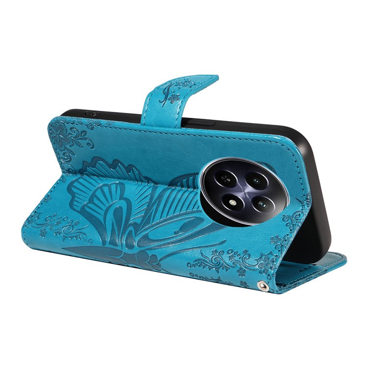 For Realme 12 5G Phone Stand Case Butterfly Imprint Leather Wallet Phone Cover with Strap - Blue