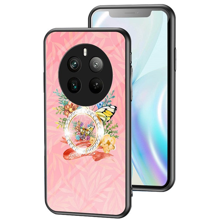 For Realme 12 Pro 5G / 12 Pro+ 5G Kickstand Case Butterfly Series Tempered Glass Phone Cover - Flower Bush Butterfly