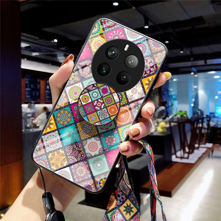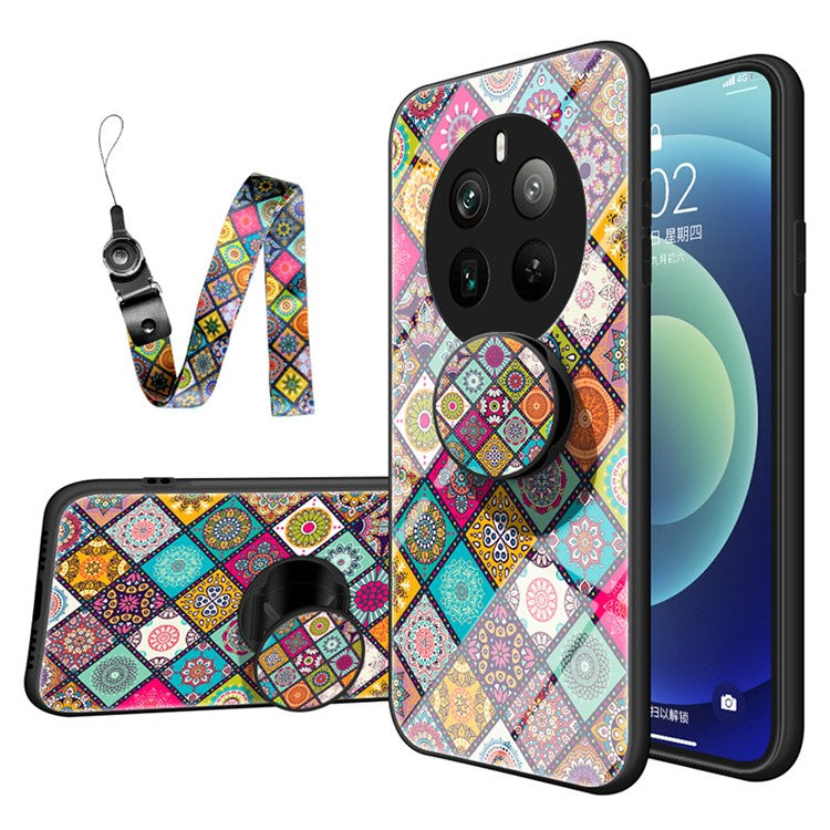 For Realme 12 Pro 5G / 12 Pro+ 5G Tempered Glass Case Pattern Print Kickstand Phone Cover - Checkered Pattern