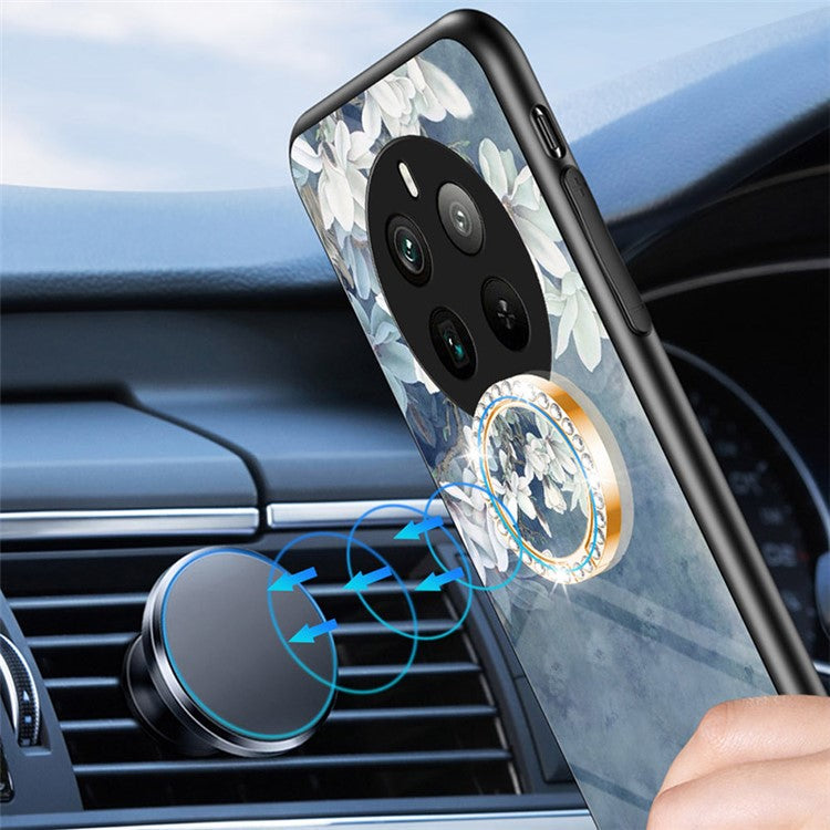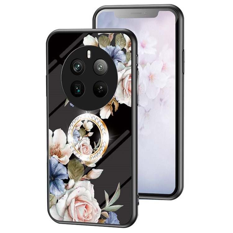For Realme 12 Pro+ 5G / 12 Pro Case Ring Holder Tempered Glas Phone Cover Flowers Design - Black Flower Bush