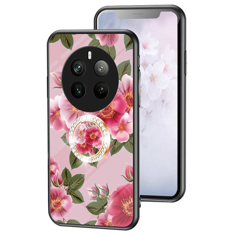 For Realme 12 Pro+ 5G / 12 Pro Case Ring Holder Tempered Glas Phone Cover Flowers Design - Glamorous Peony