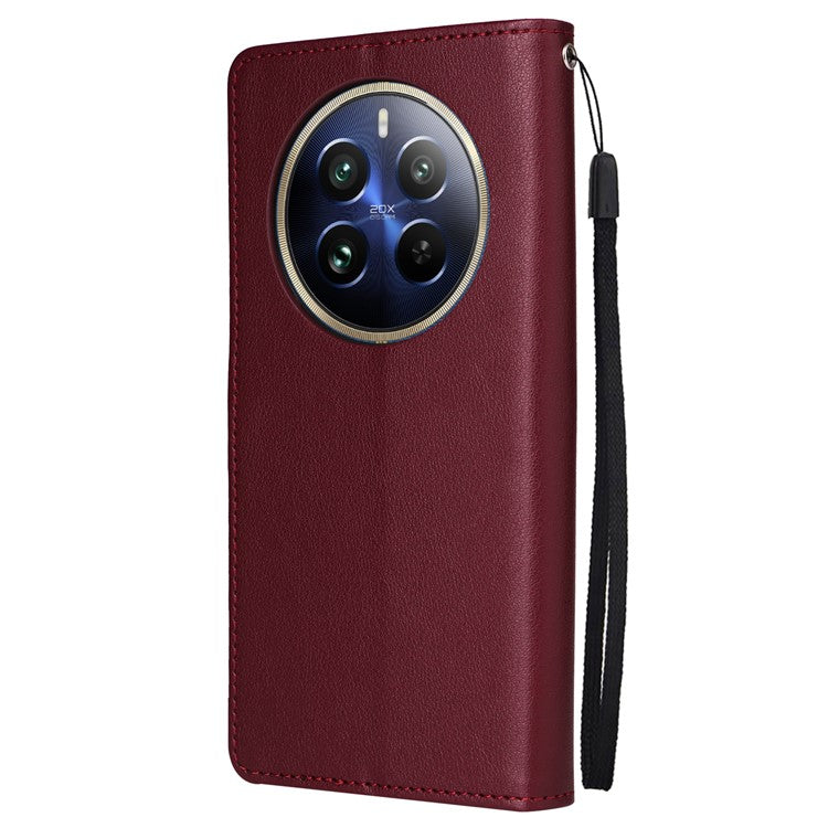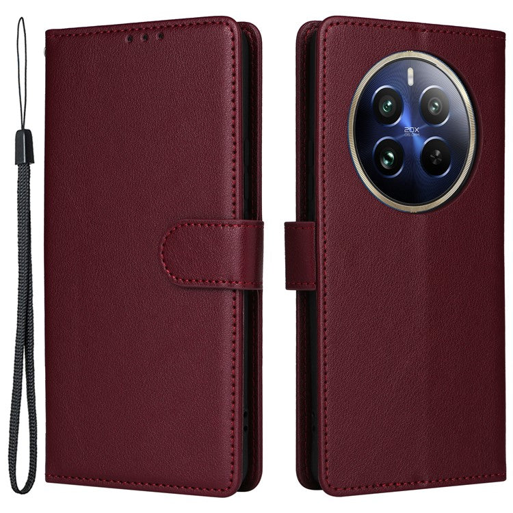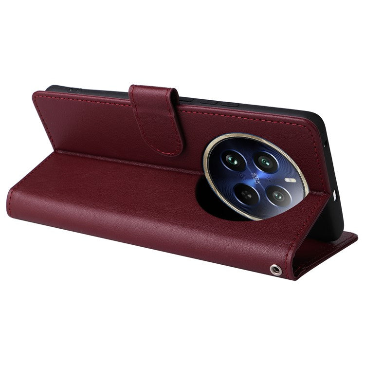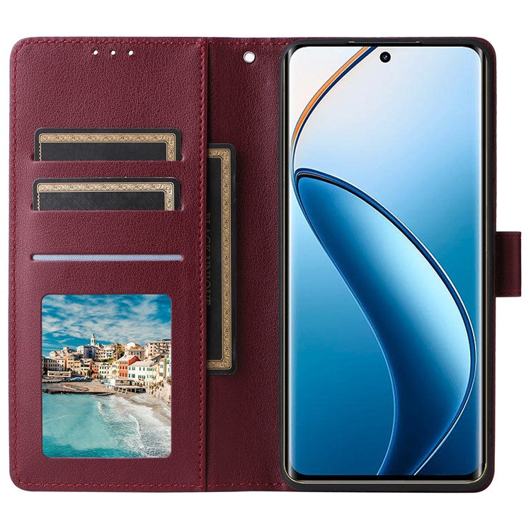 For Realme 12 Pro+ 5G / Realme 12 Pro 5G Case 3 Card Slots PU Leather Wallet Stand Phone Cover - Wine Red