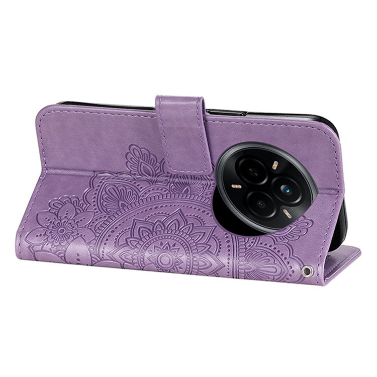 For Realme 14 Pro 5G Case Floral Pattern PU Leather Wallet Stand Phone Cover - Purple