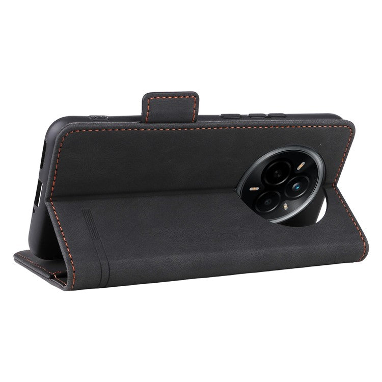 For Realme 14 Pro 5G Case Leather Wallet Flip Phone Cover with Hardware Decor - Black