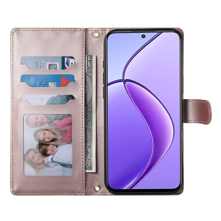 For Realme 14 Pro 5G Case Rhombus Stitching Wallet Stand Leather Phone Cover with Long / Short Strap - Rose Gold