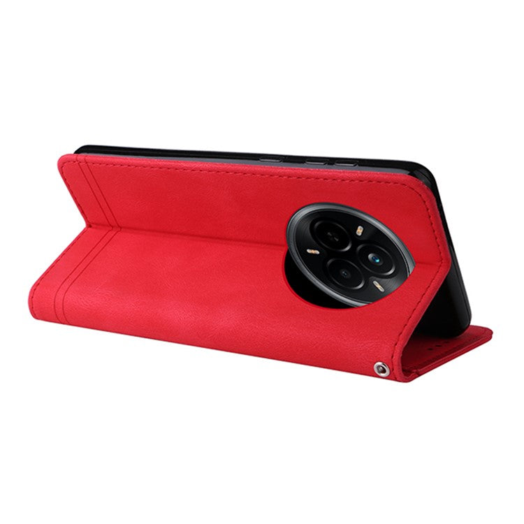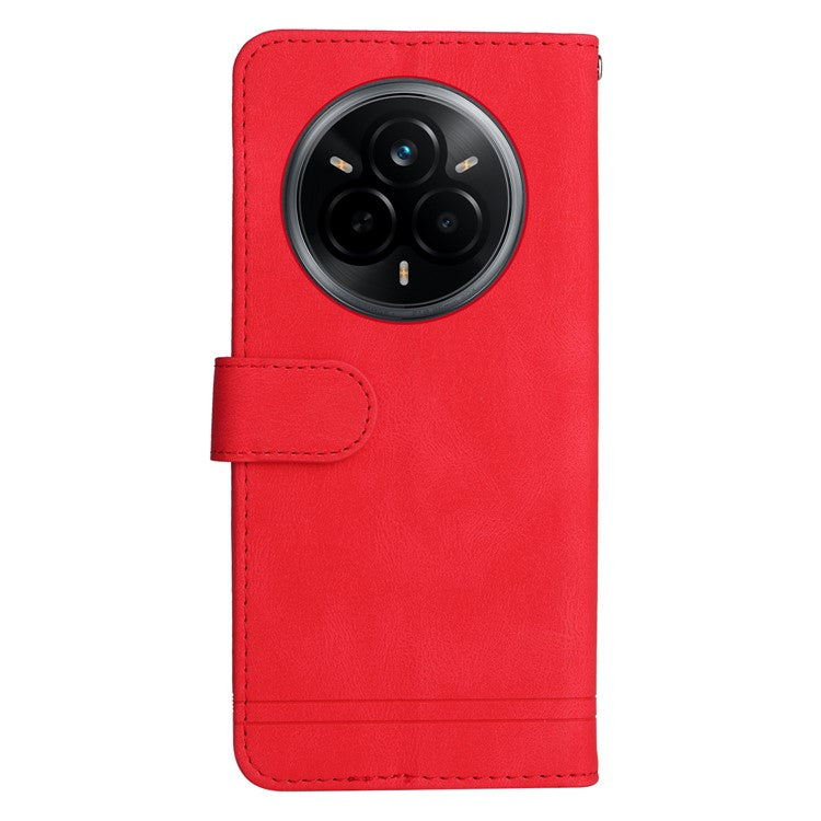 For Realme 14 Pro 5G Case Wallet Skin Touch Leather Phone Cover Tree Pattern Hardware - Red