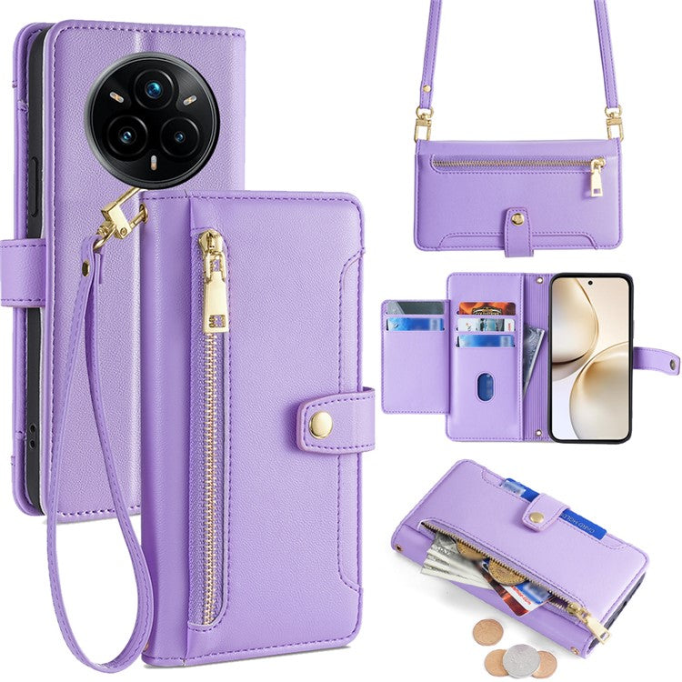 For Realme 14 Pro 5G Case Zipper Pocket Wallet Leather Phone Cover with 2 Straps - Purple
