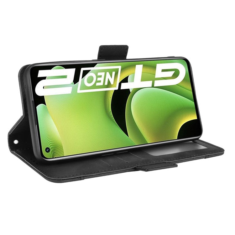 For Realme GT Neo2 5G/GT Neo 3T 5G Large Storage Spece Flip Phone Case Multiple Card Slot Design PU Leather Wallet Cover Protector - Black