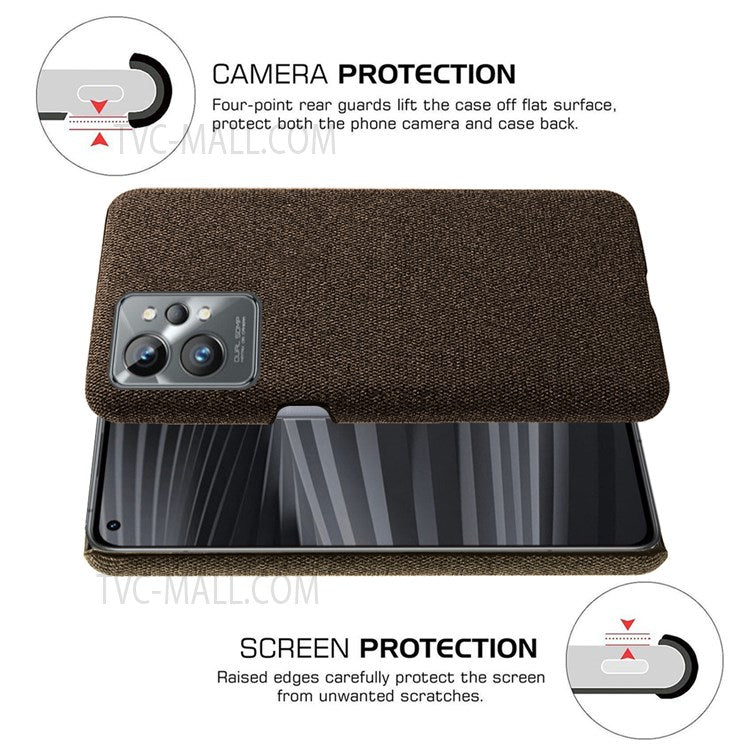 For Realme GT2 Pro Cloth Coated Hard PC Shell Ultra Thin Slim Protective Phone Cover - Brown