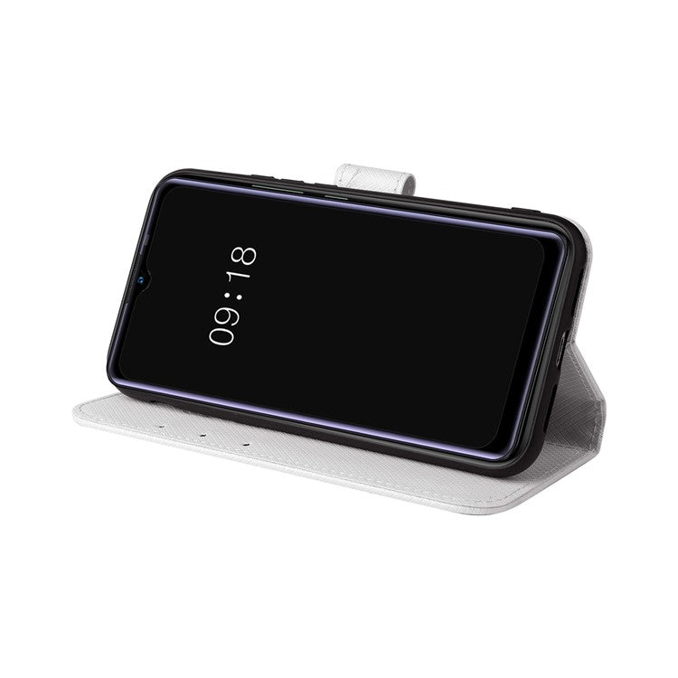 For Realme Narzo 50A Phone Case Cover Diamond Texture PU Leather Wallet Stand Cell Phone Shell with Strap - White