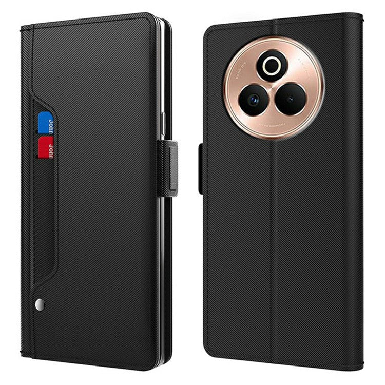 For Realme P3 Pro 5G Case Stand PU Leather Phone Cover Card Holder Mirror - Black