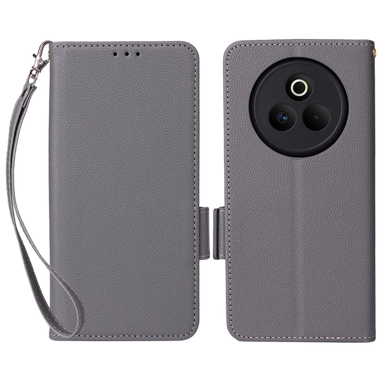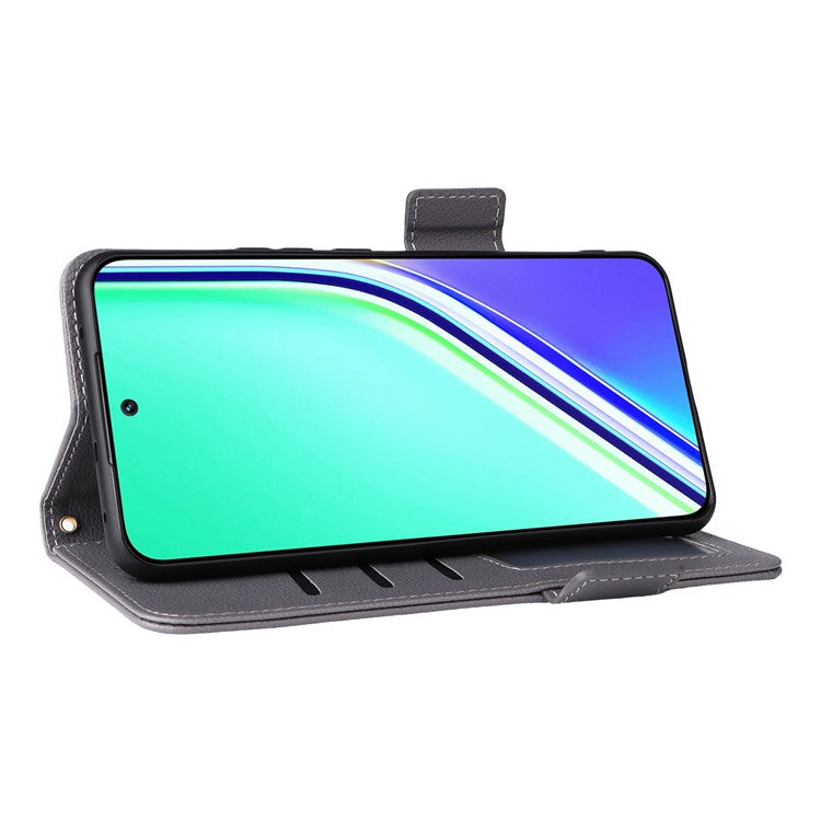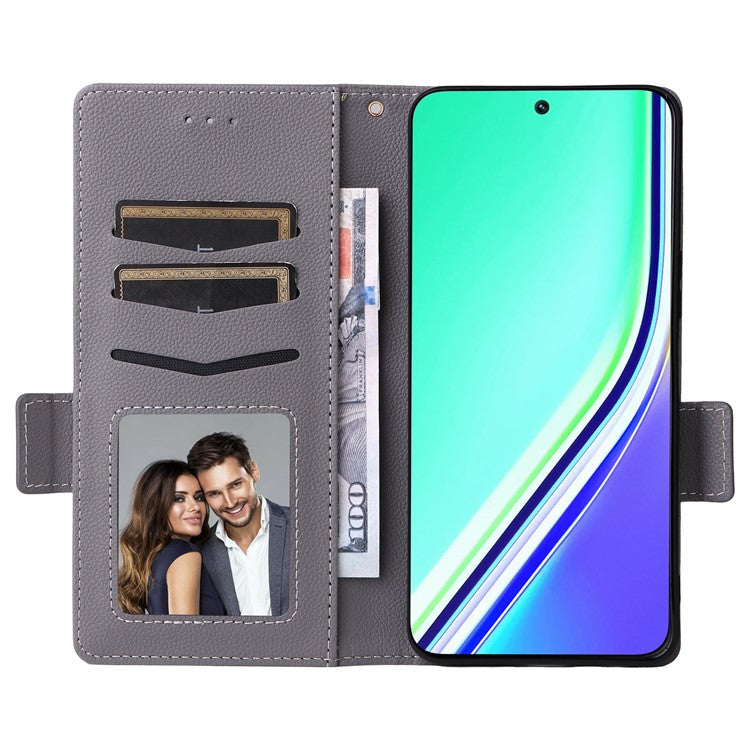 For Realme P3 Pro 5G Case Wallet Flip Litchi Texture PU Leather Phone Cover - Grey