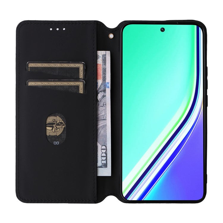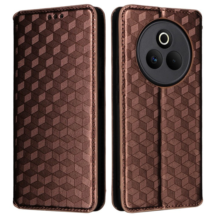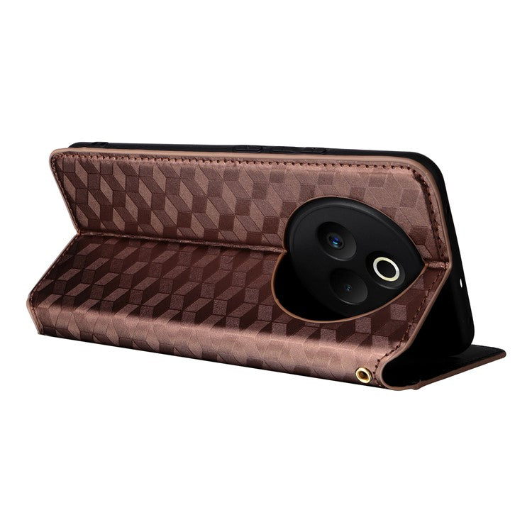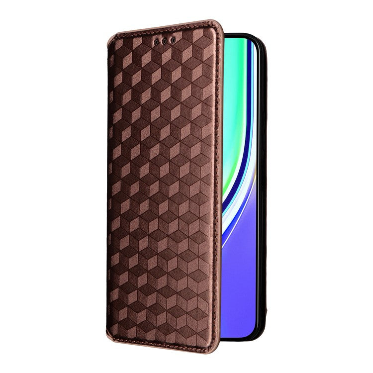 For Realme P3 Pro 5G Case Wallet Rhombus Imprinted Leather Phone Cover - Brown