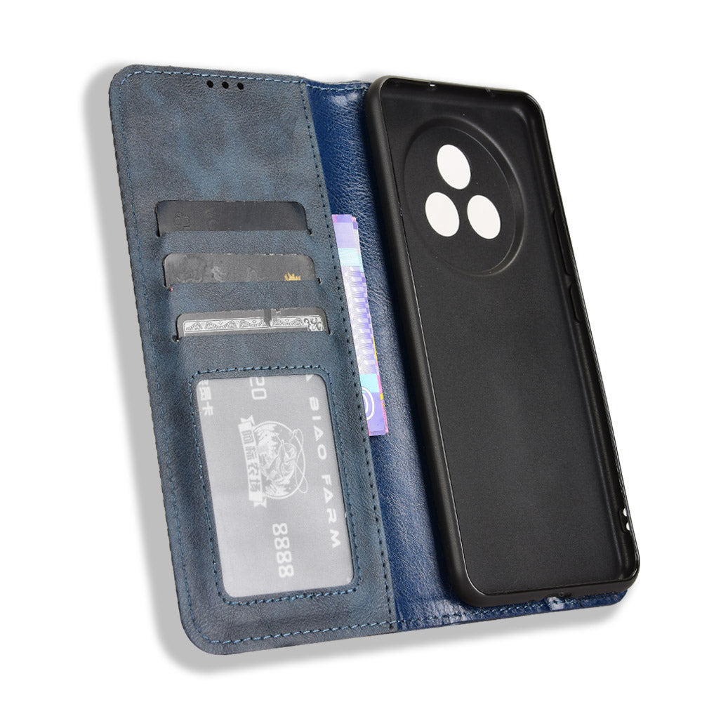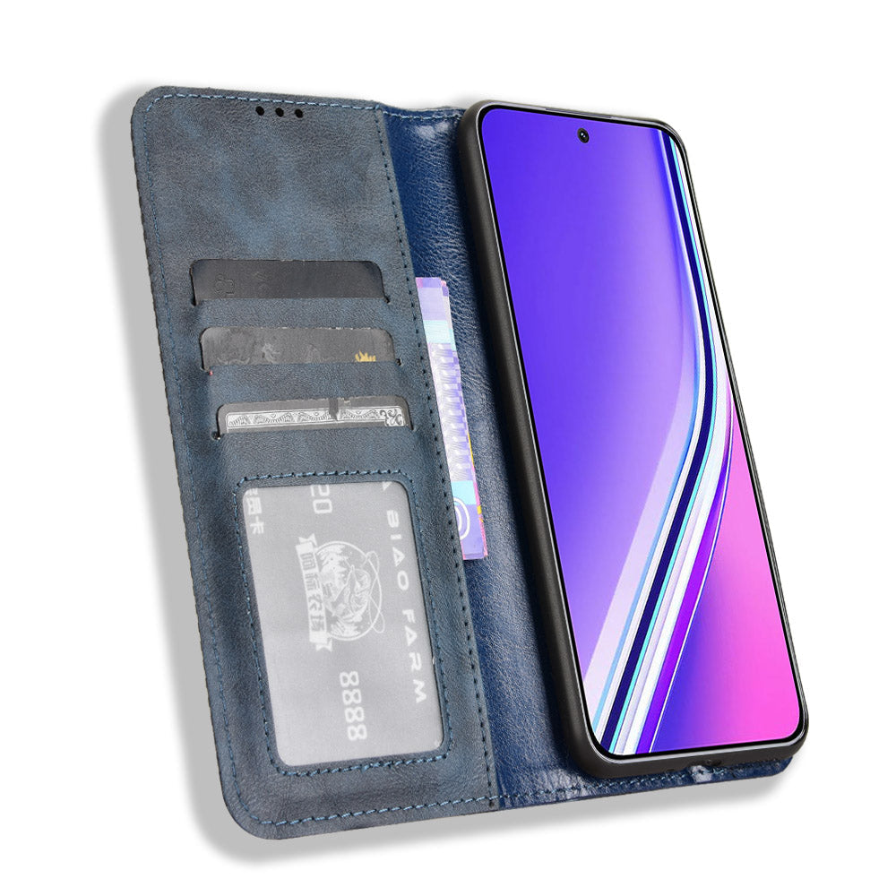 For Realme P3 Pro 5G Retro PU Leather Case Phone Wallet Stand Cover - Blue