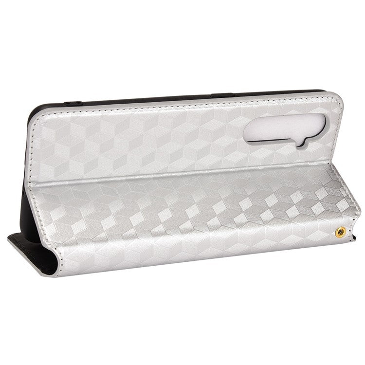 For Realme X50 Pro 5G/X50 Pro Player PU Leather + TPU Cover Imprinting Rhombus Walelt Stand Phone Case - Silver