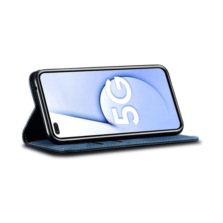 Jeans Cloth Texture Leisure Style Cell Phone Leather Case with Wallet and Stand for Realme 7 (Asia)/(Global) - Blue