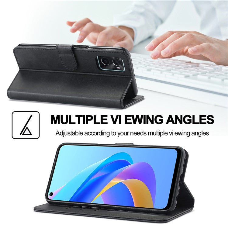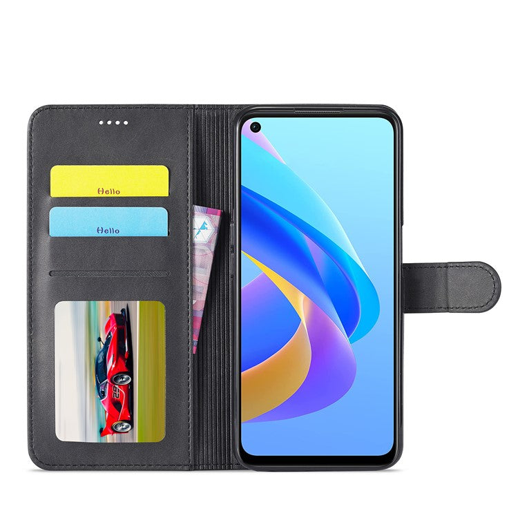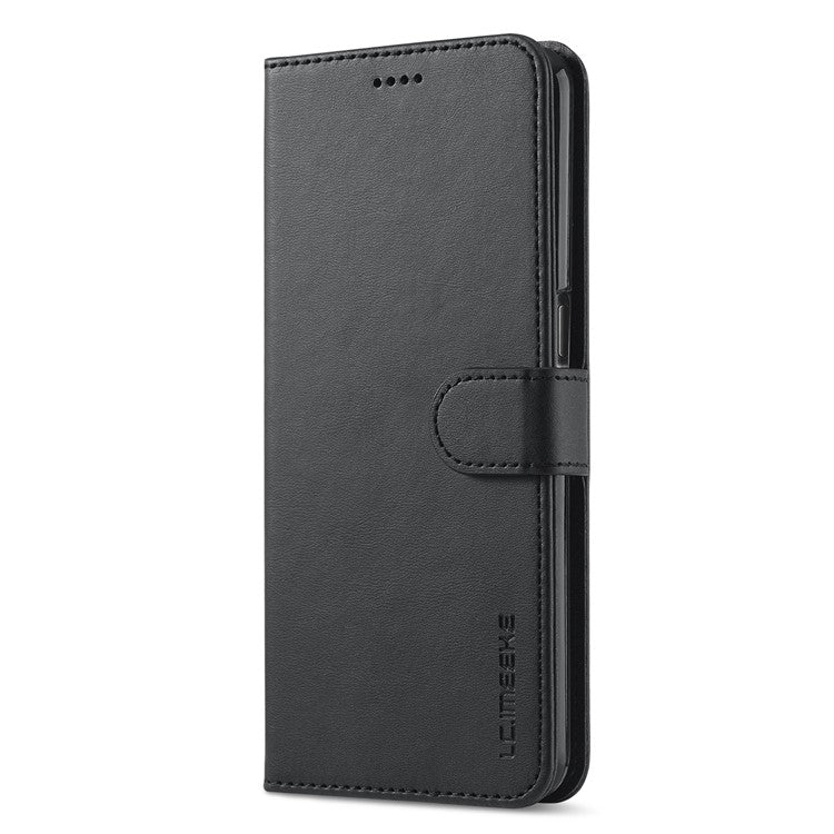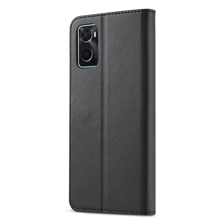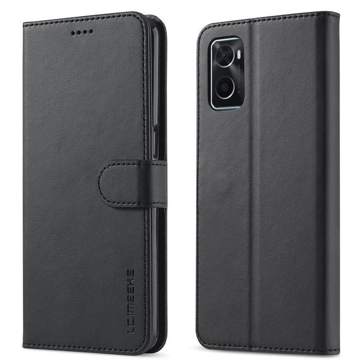 LC.IMEEKE for Realme 9i/Oppo A36/Oppo A76 Textured PU Leather Flip Folio Stand Case Mobile Phone Wallet Case Cover - Black