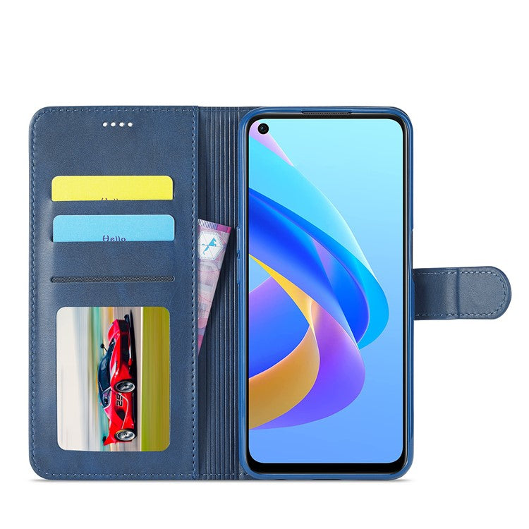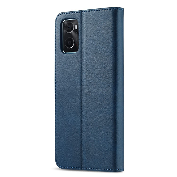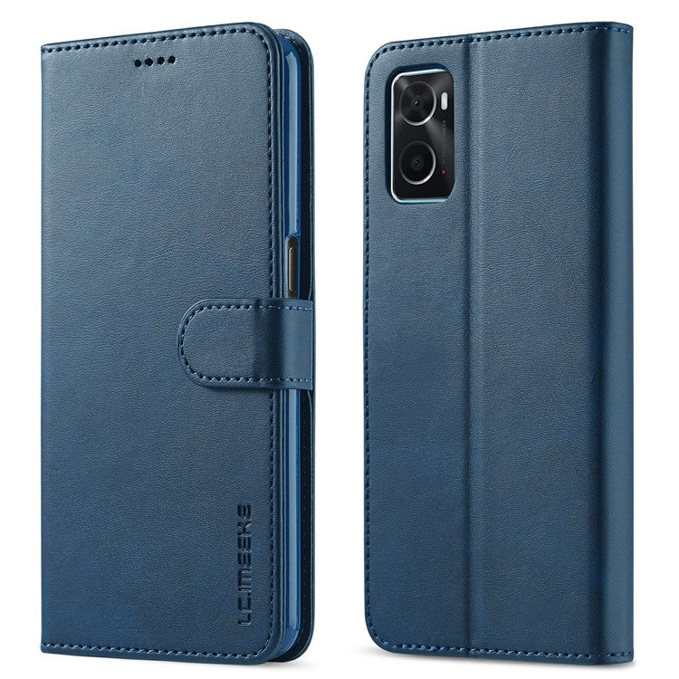 LC.IMEEKE for Realme 9i/Oppo A36/Oppo A76 Textured PU Leather Flip Folio Stand Case Mobile Phone Wallet Case Cover - Blue