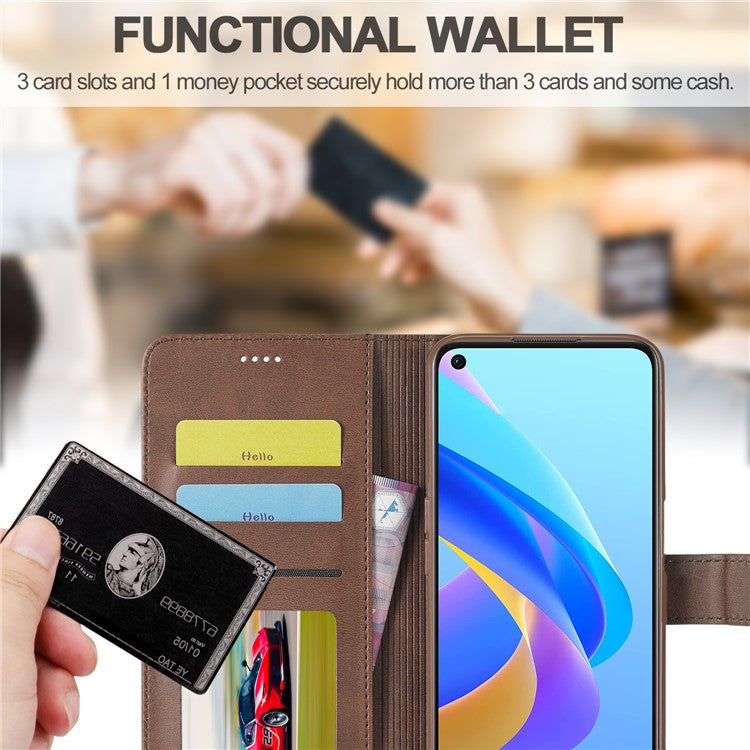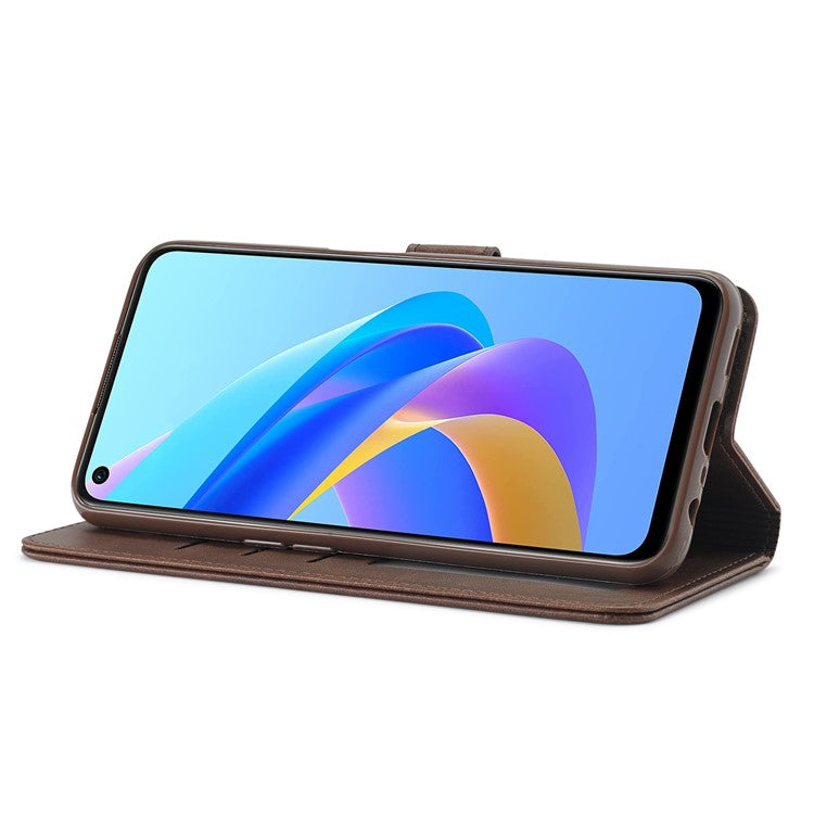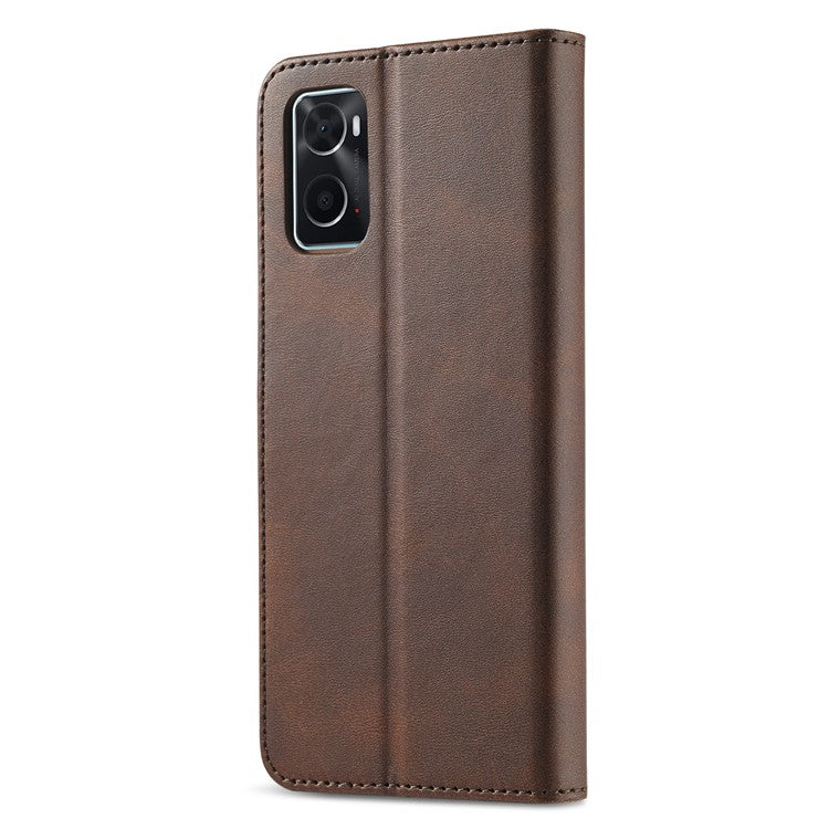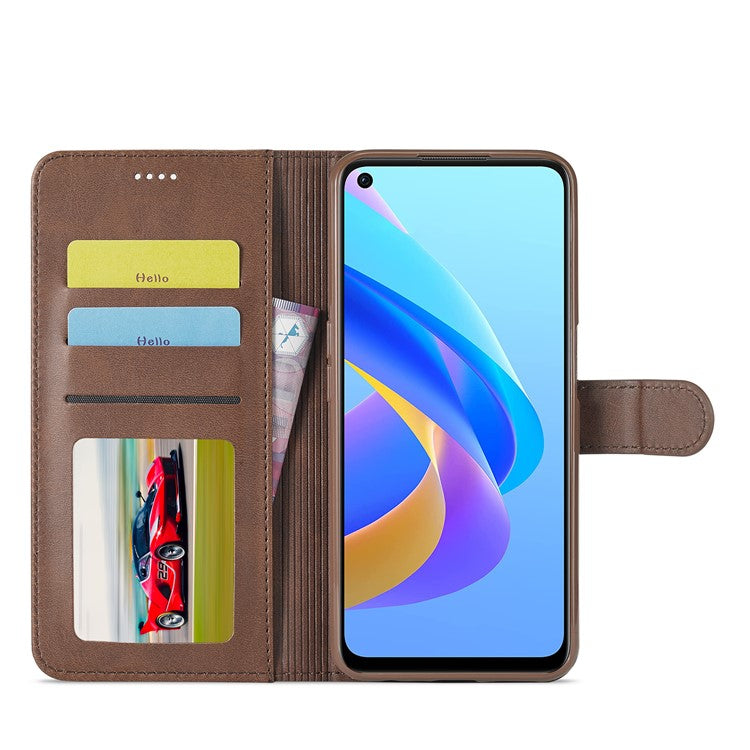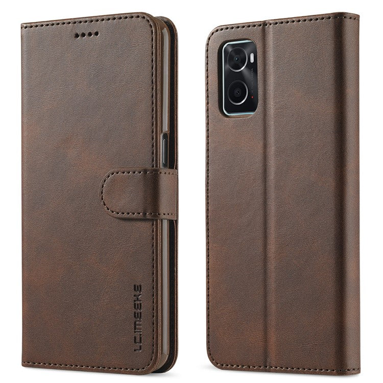 LC.IMEEKE for Realme 9i/Oppo A36/Oppo A76 Textured PU Leather Flip Folio Stand Case Mobile Phone Wallet Case Cover - Brown