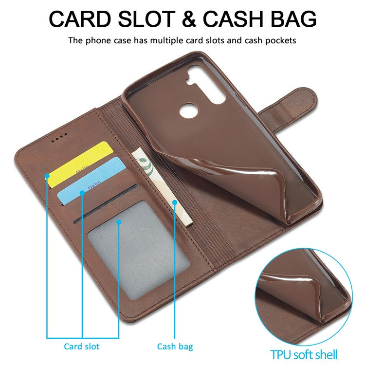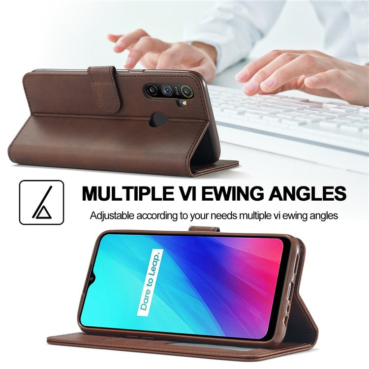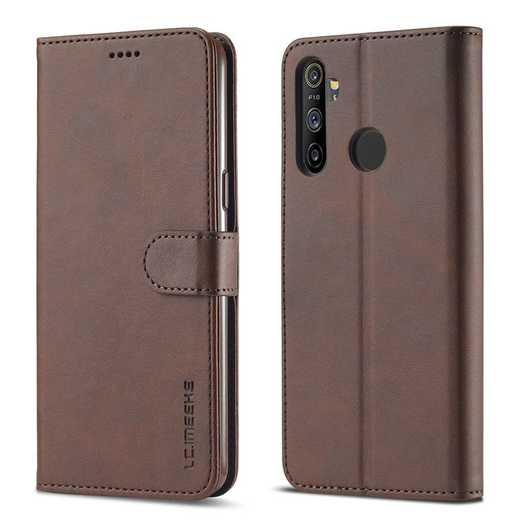 LC.IMEEKE Wallet Stand Leather Shell Phone Cover Case for Realme C3/Realme 5/Realme 5s/Realme 5i/C3i(With the Fingerprint Hole)/Realme 6i(Philippines Version)/Realme Narzo - Brown