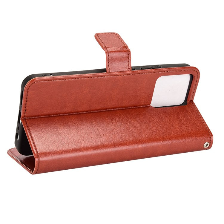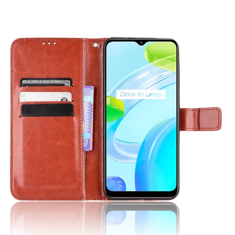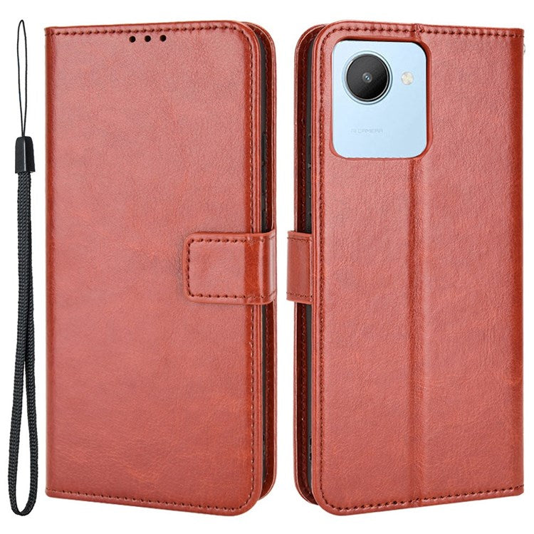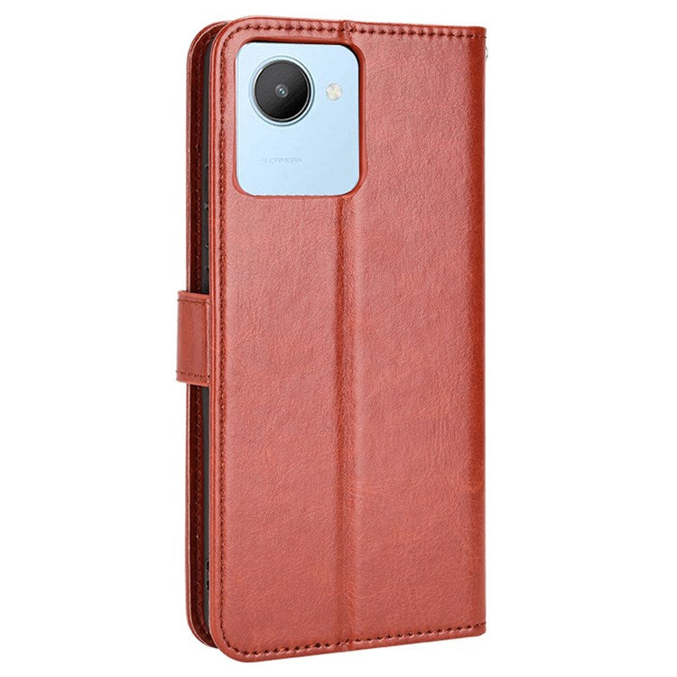 Mobile Phone Case Bag for Realme C30 4G, Crazy Horse Texture PU Leather Cover Stand Wallet - Brown