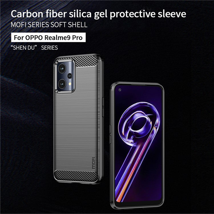 MOFI JK TPU Series-1 for Realme 9 Pro 5G / 9 5G / V25 Anti-Fingerprint Carbon Fiber Design Phone Case Soft TPU Brushed Surface Protective Cover - Blue