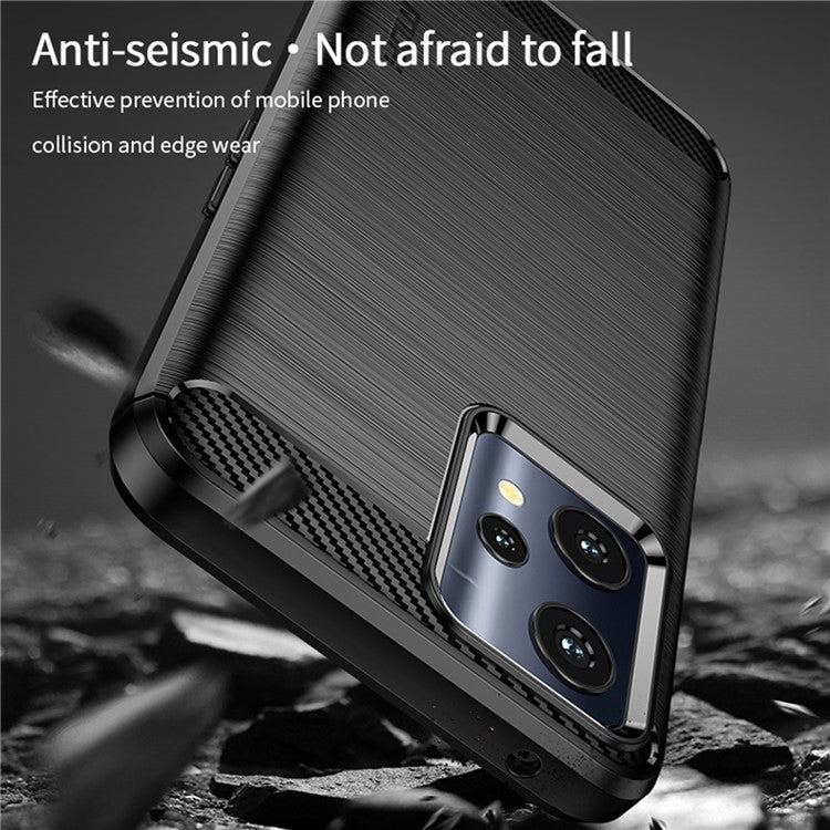Eco-friendly TPU material with drop-resistant air cushion design protects the phone from impact and drops effectively. Special brushed surface provides good hand feeling and anti-fingerprint function. Top and bottom parts with carbon fiber texture make the case more exquisite and deluxe. Slim case protects phone with minimal bulk.