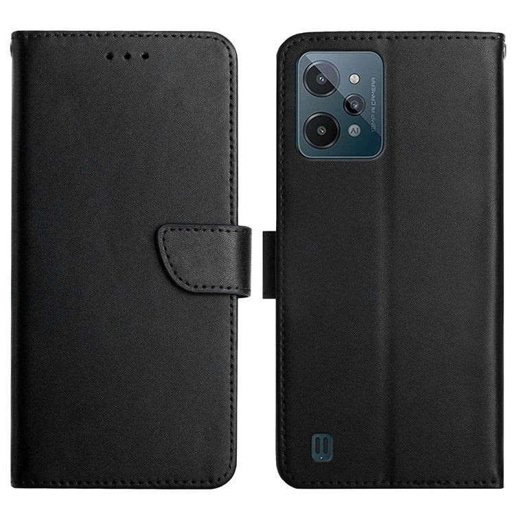 Nappa Texture Case for Realme C31, Wallet Stand Genuine Leather Shockproof Drop-proof Magnetic Closing Phone Cover - Black
