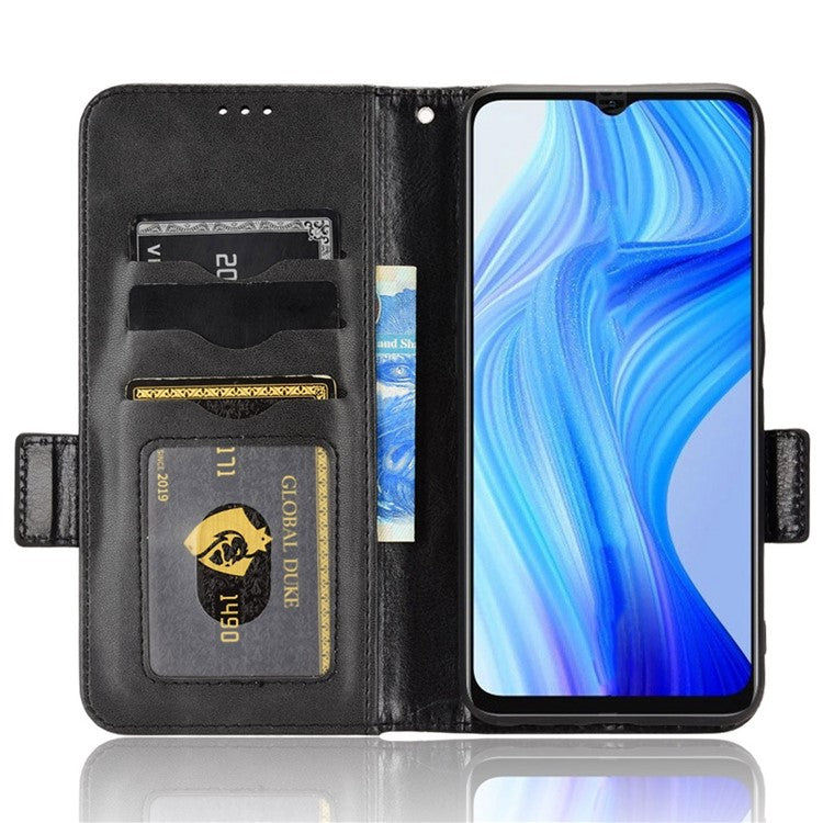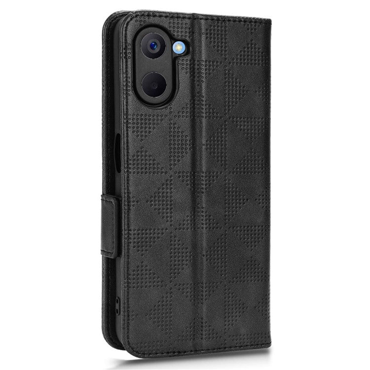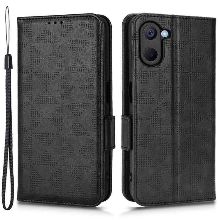 Phone Case for Realme V20 5G, Triangle Pattern Imprinted Flip Wallet Stand PU Leather Cover with Strap - Black