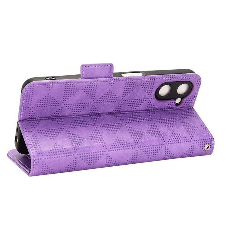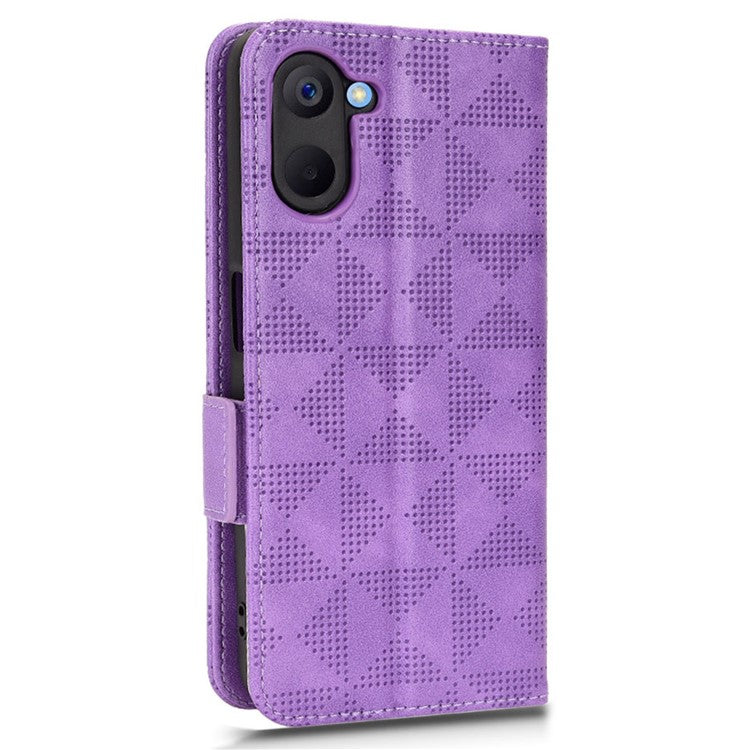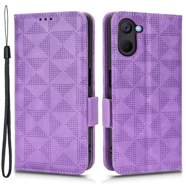 Phone Case for Realme V20 5G, Triangle Pattern Imprinted Flip Wallet Stand PU Leather Cover with Strap - Purple