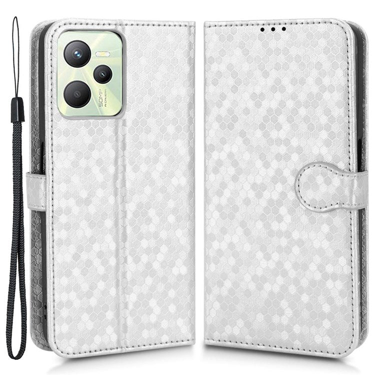 Protective Case for Realme C35 Dot Pattern Imprinted PU Leather Folio Flip Cover Wallet Phone Case with Strap - Silver