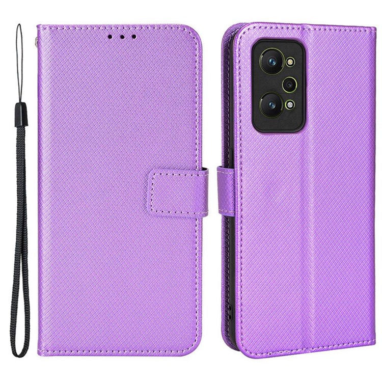 PU Leather Cover for Realme GT Neo2 5G/GT Neo 3T 5G/GT2 Anti-scratch Diamond Texture Wallet Stand Magnetic Full Protection Phone Case - Purple