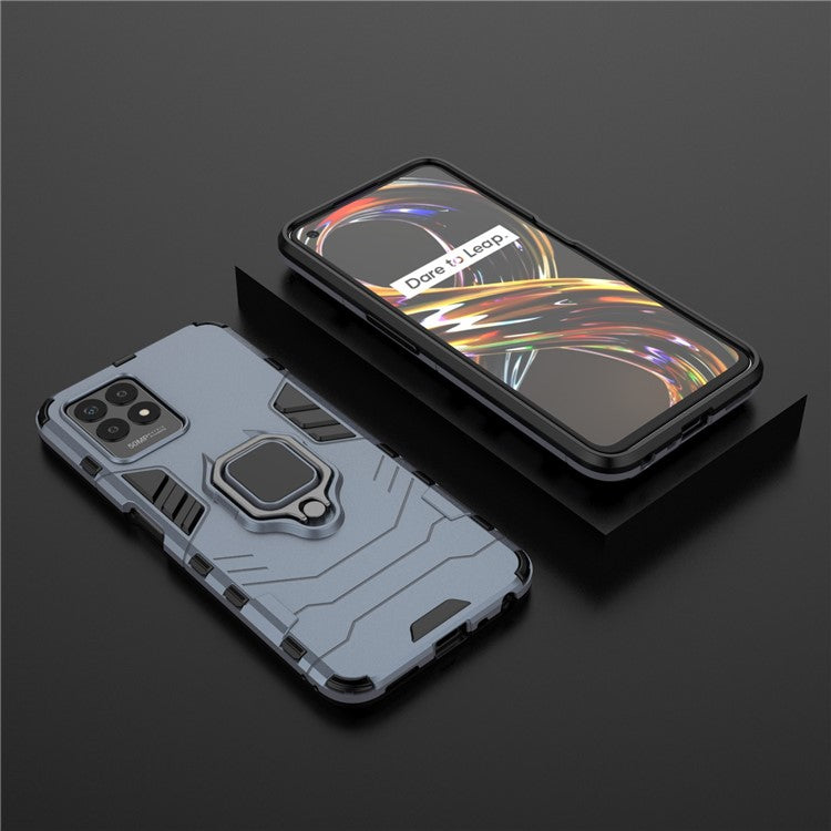 Ring Holder Kickstand Shockproof Hard PC + Soft TPU Phone Hybrid Case Cover for Realme 8i/Narzo 50 4G - Blue