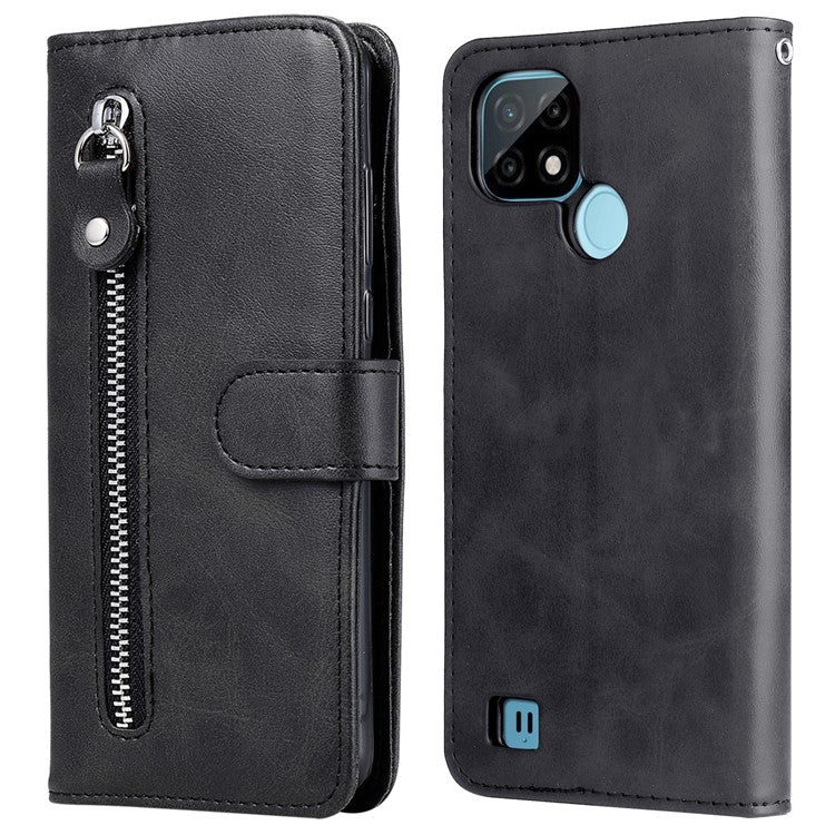 Shockproof Anti-scratch Phone Covering PU Leather Zippered Pocket Phone Case Coin Wallet Stand Folding Case for Realme C21Y/C21/C25Y - Black