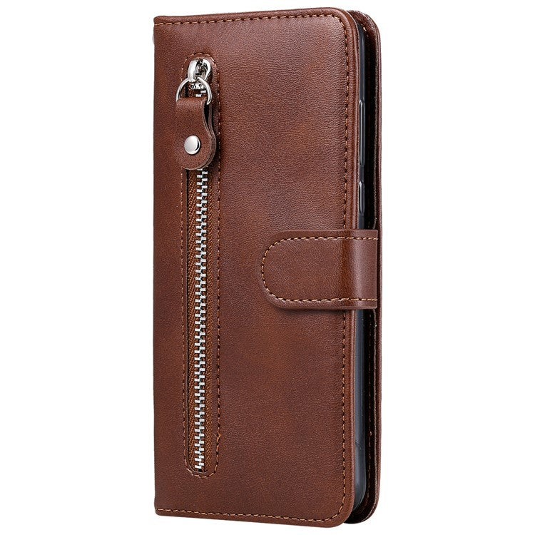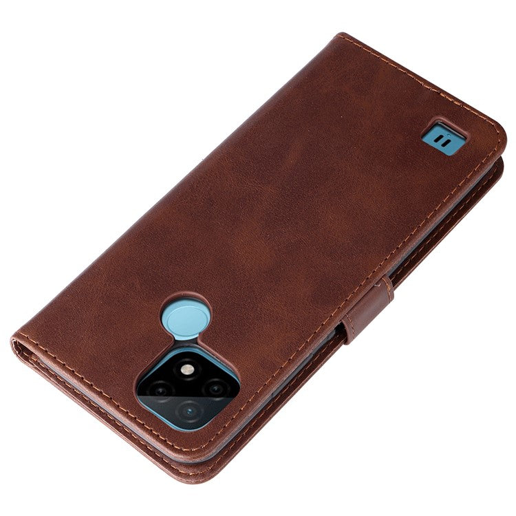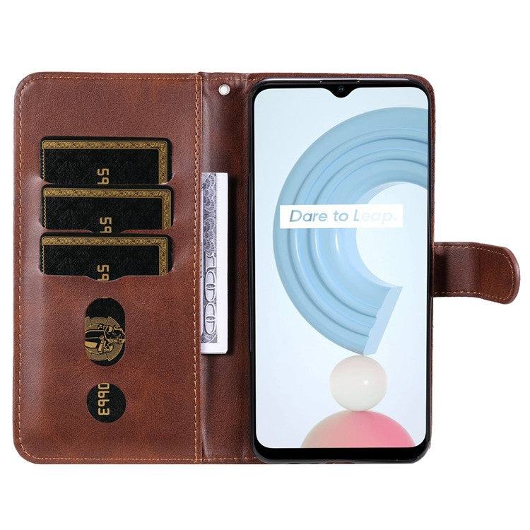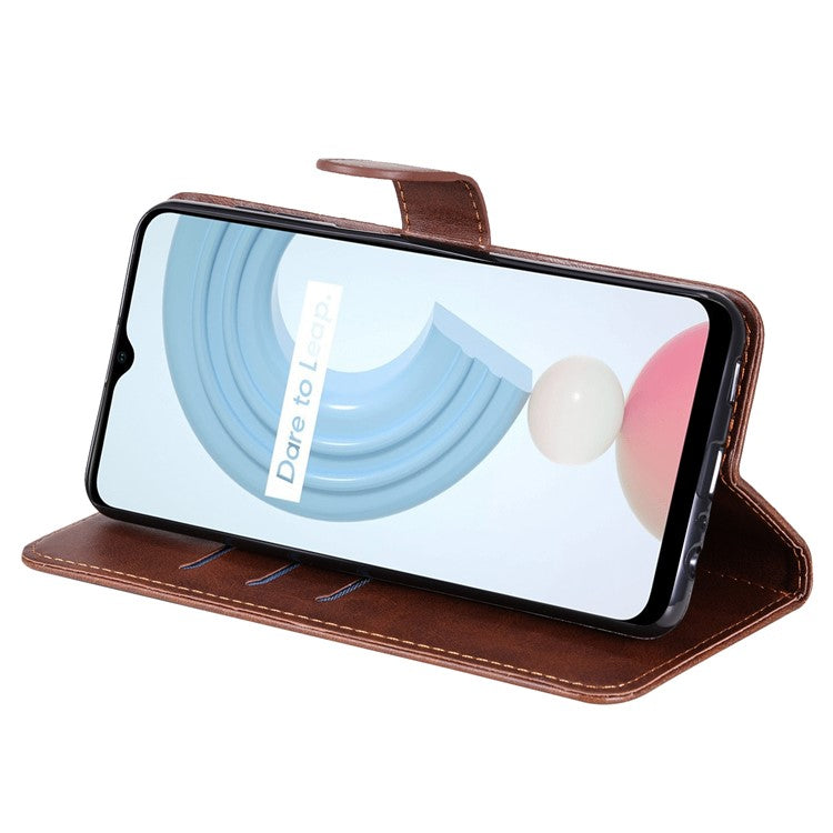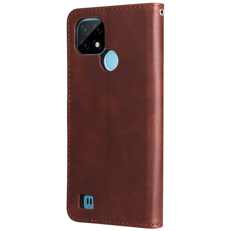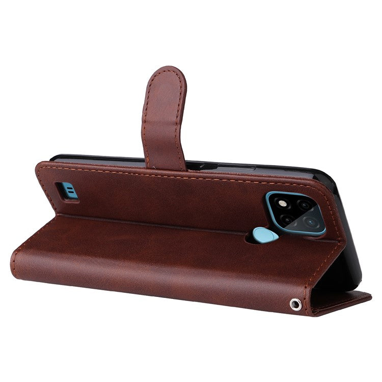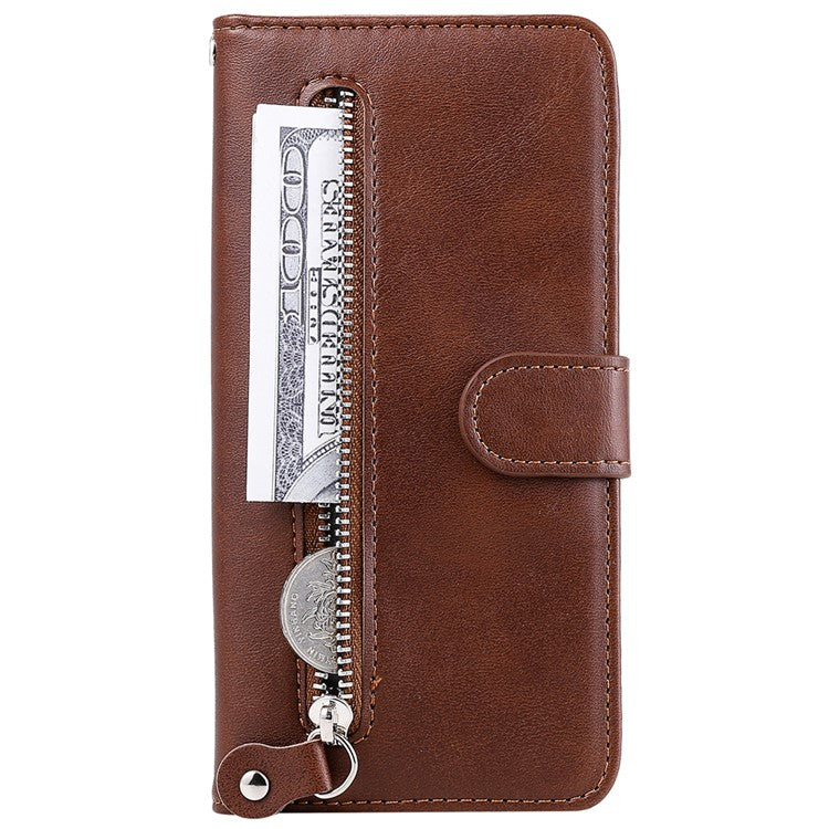 Shockproof Anti-scratch Phone Covering PU Leather Zippered Pocket Phone Case Coin Wallet Stand Folding Case for Realme C21Y/C21/C25Y - Brown