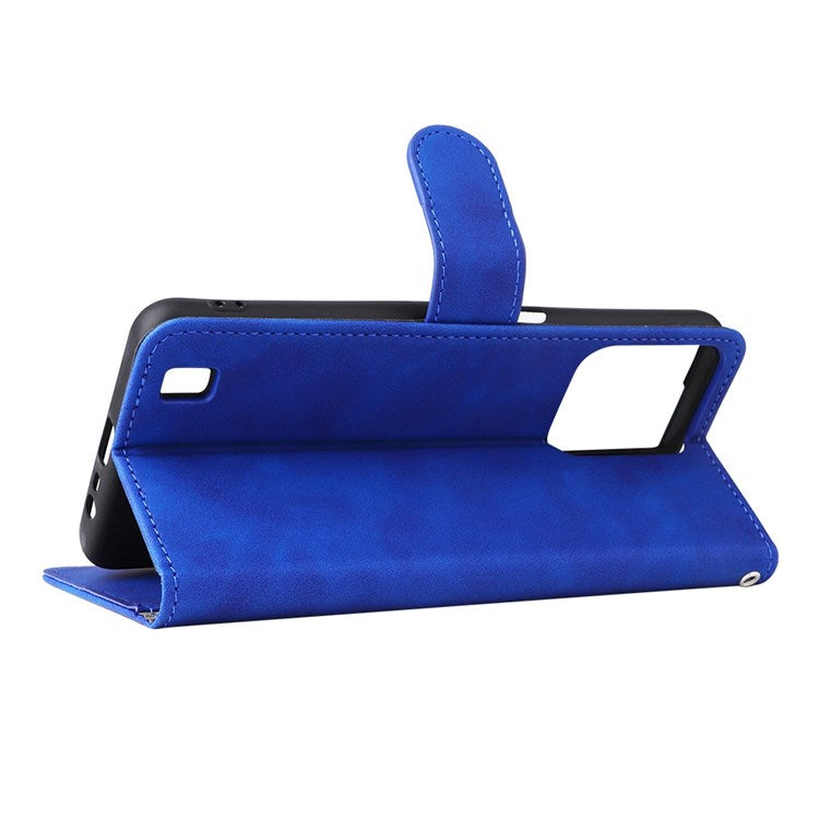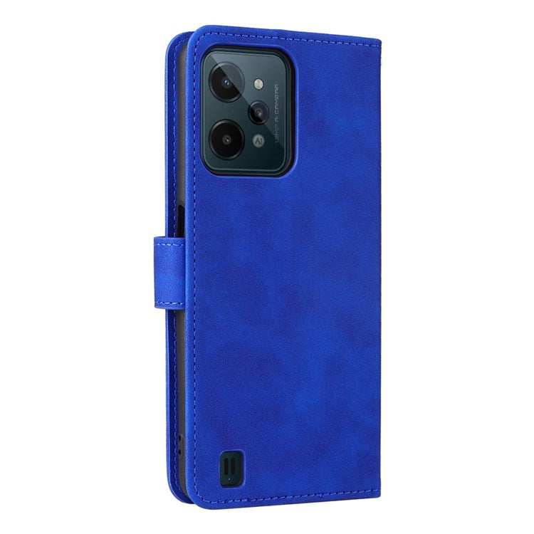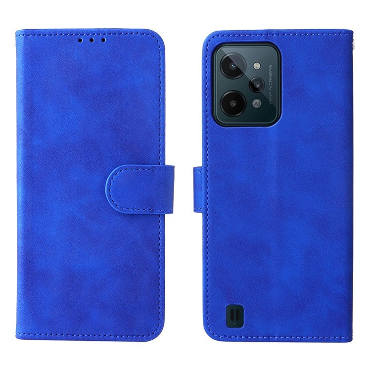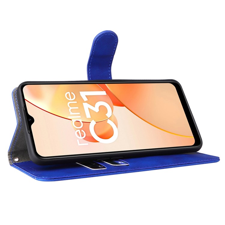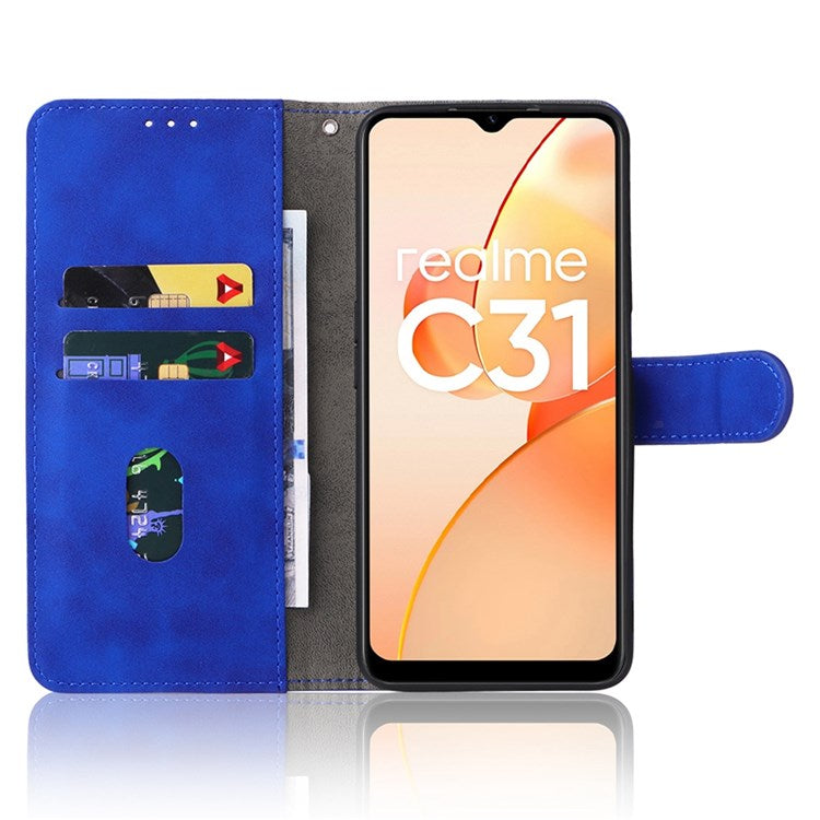 Skin-touch Feeling Phone Case for Realme C31, PU Leather + TPU Full Protection Cover with Stand Wallet - Blue