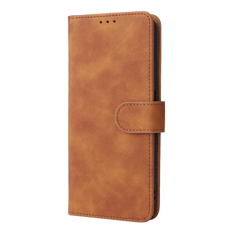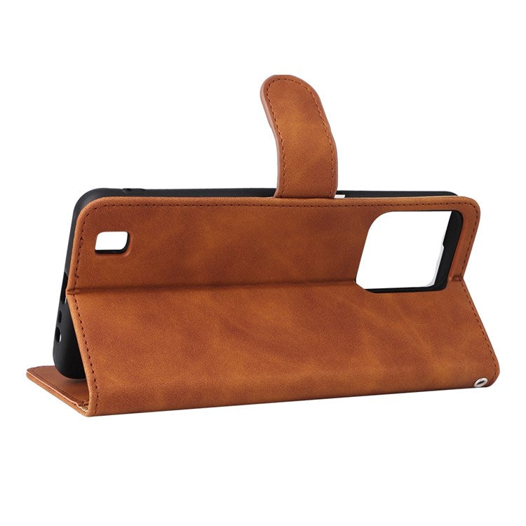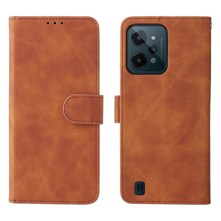 Skin-touch Feeling Phone Case for Realme C31, PU Leather + TPU Full Protection Cover with Stand Wallet - Brown