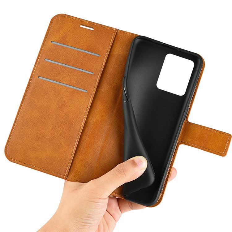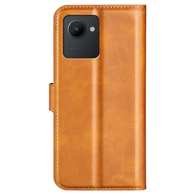 Square Magnetic Clasp Phone Case for Realme C30 4G, Textured PU Leather + TPU Wallet Stand Cover - Yellow