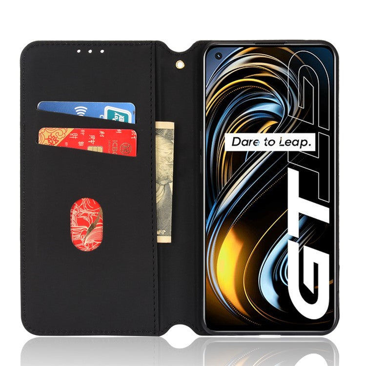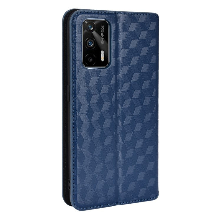 Stand Wallet Design Well-protected 3D Rhombus Imprinting Leather Phone Case Cover for Realme GT Neo2T 5G/GT 5G/GT Neo 5G/Q3 Pro 5G - Blue