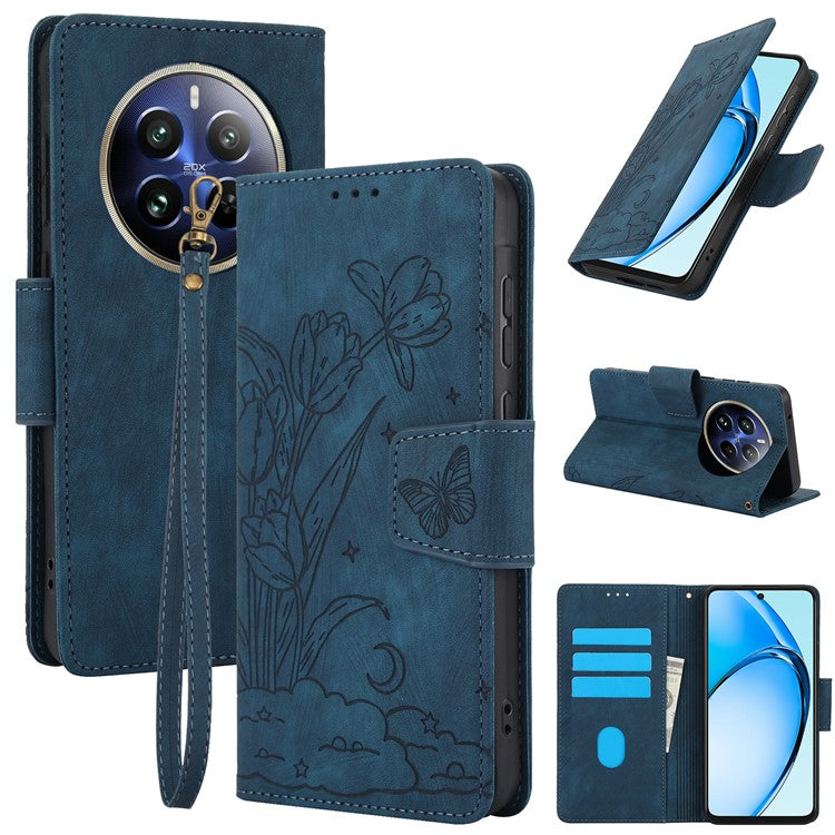 SY-001 For Realme 12 Pro 5G / 12 Pro+ 5G Case with Wrist Strap Butterfly Flower Leather Phone Cover Folio Wallet - Blue