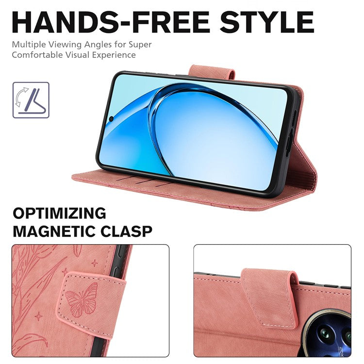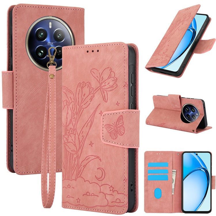 SY-001 For Realme 12 Pro 5G / 12 Pro+ 5G Case with Wrist Strap Butterfly Flower Leather Phone Cover Folio Wallet - Pink