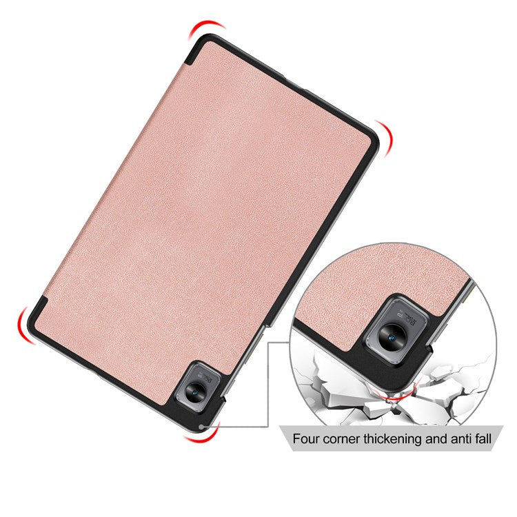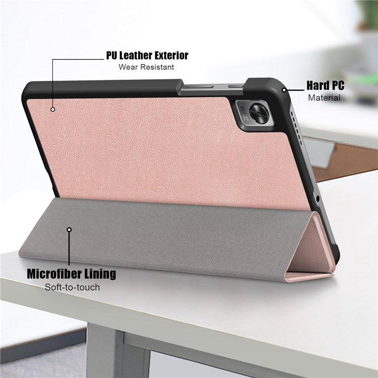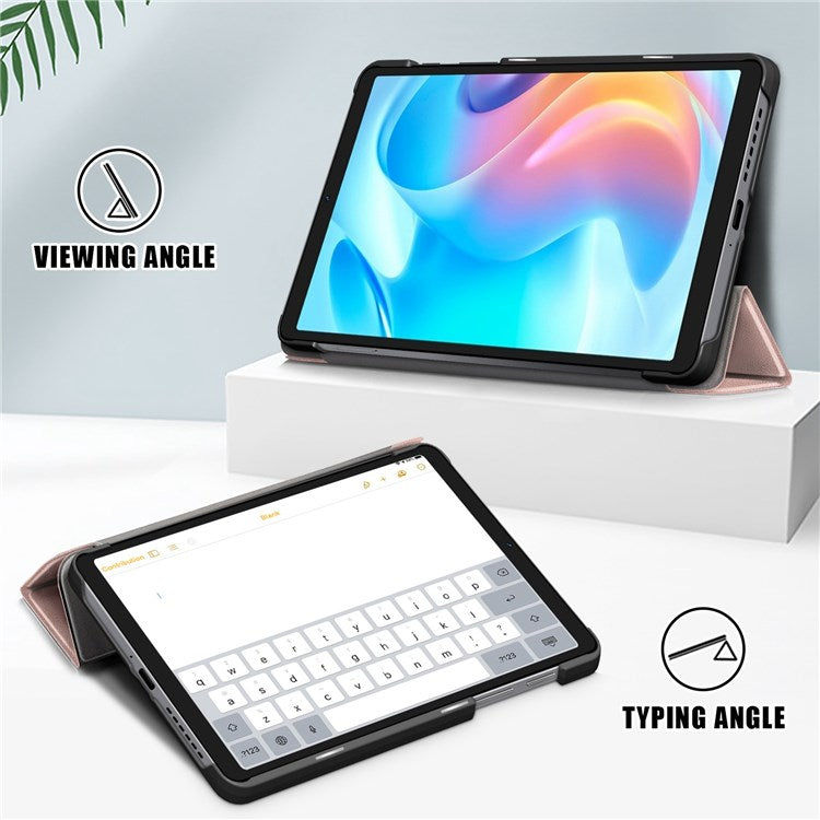 Tablet Covering Shell for Realme Pad Mini PC+PU Leather Trifold Stand Cover Well-protected Flip Tablet Case - Rose Gold