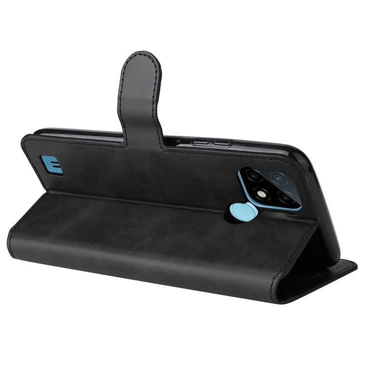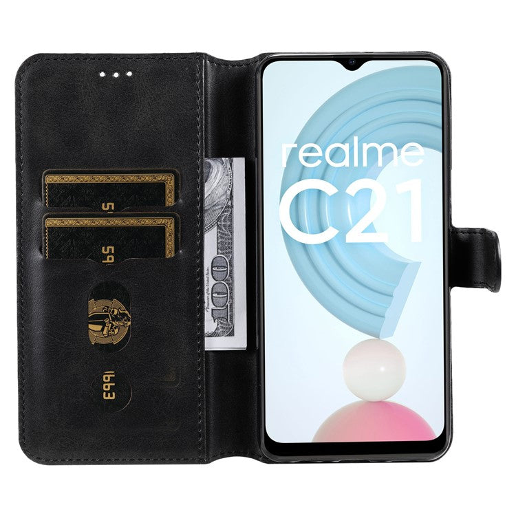 Textured Auto-absorbed Leather Case Magnetic Mobile Phone Full Protective Wallet Cover with Stand for Realme C21Y/C21/C25Y - Black