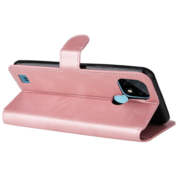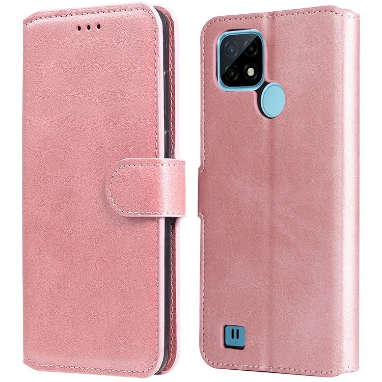 Textured Auto-absorbed Leather Case Magnetic Mobile Phone Full Protective Wallet Cover with Stand for Realme C21Y/C21/C25Y - Rose Gold